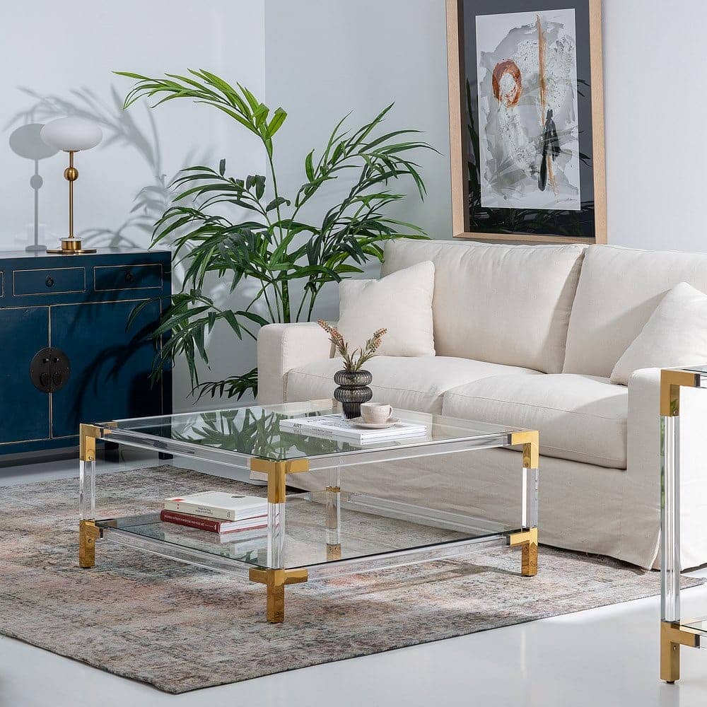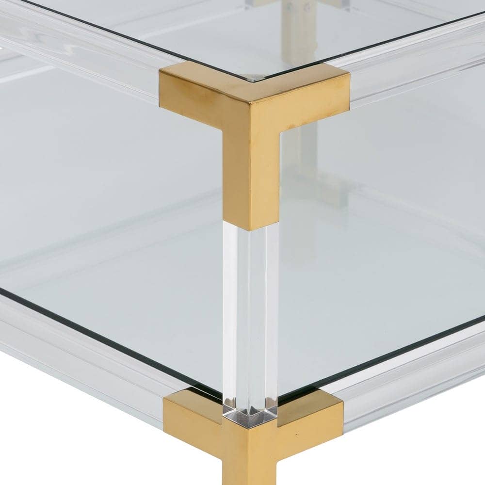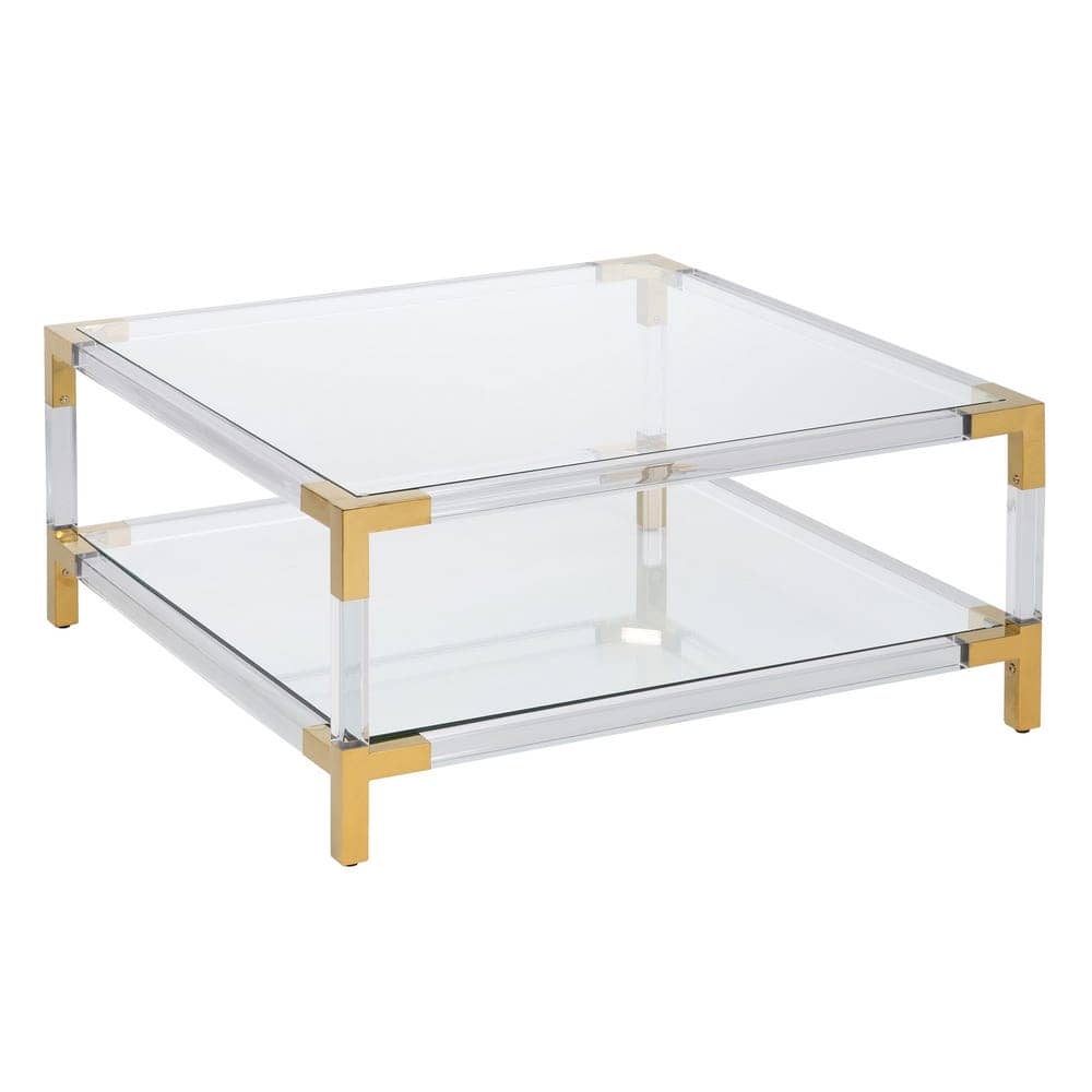 Mesa de Centro Oro-Transparente 100x100x45 cm Acero Inoxidable y Cristal Templado