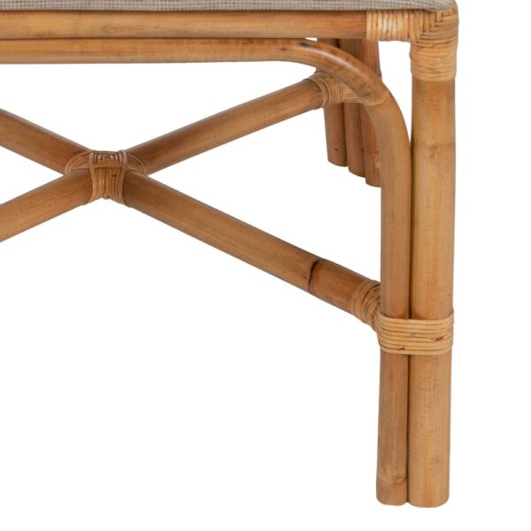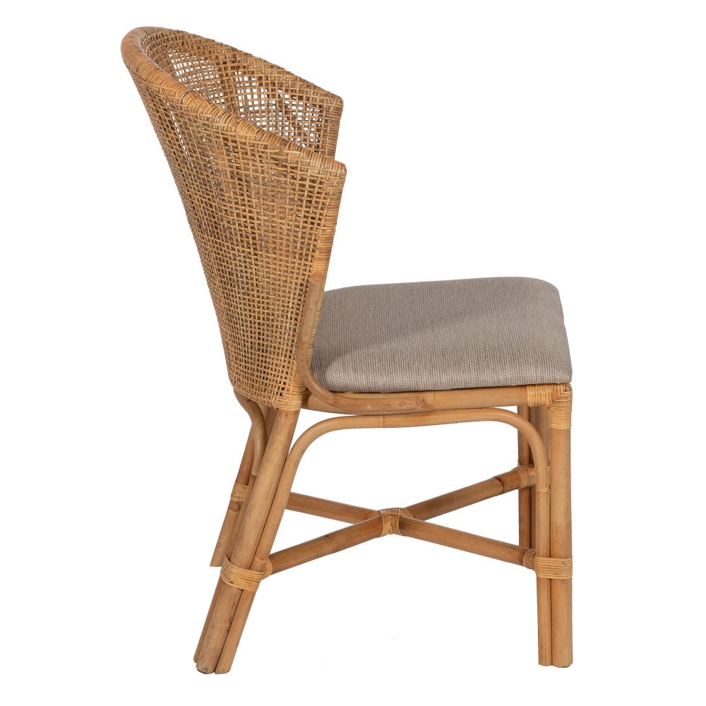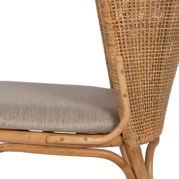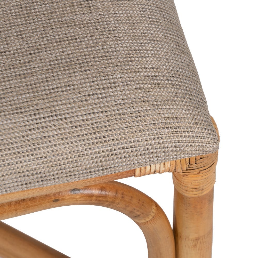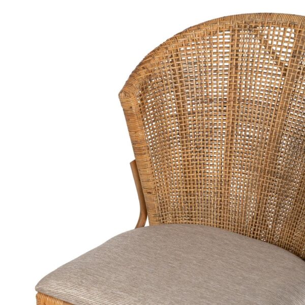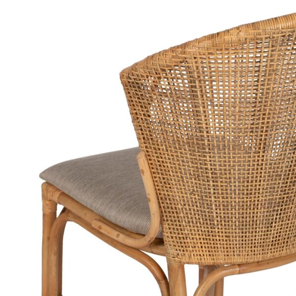 Material: ratán, tejido. Altura asiento: 45cm. Ancho asiento: 46cm. Profundidad asiento: 44cm. Altura respaldo: 42cm. Altura patas: 36,5cm.