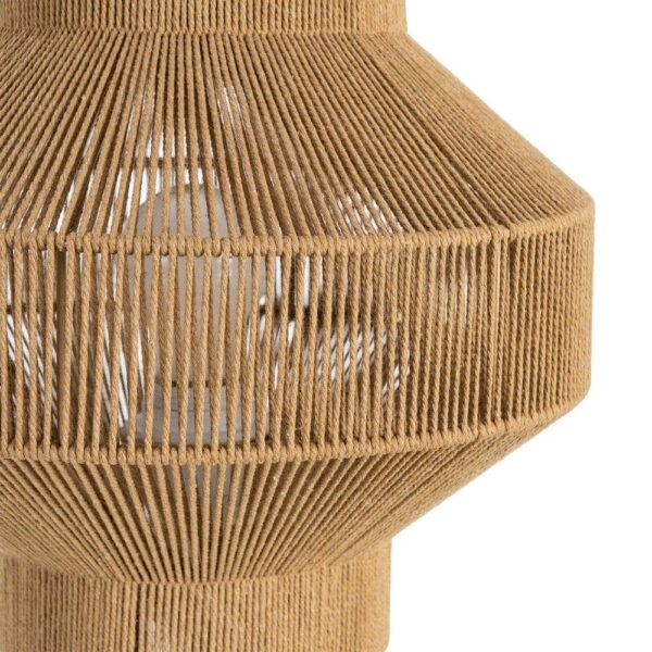 Material: metal (hierro) – cuerda de papel Casquillo: E27 220-240v 50Hz Bombilla: no incluida Largo cable: 120cm.