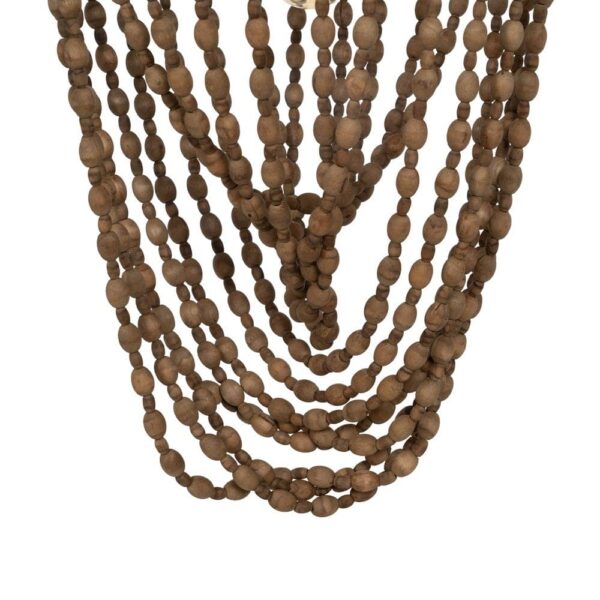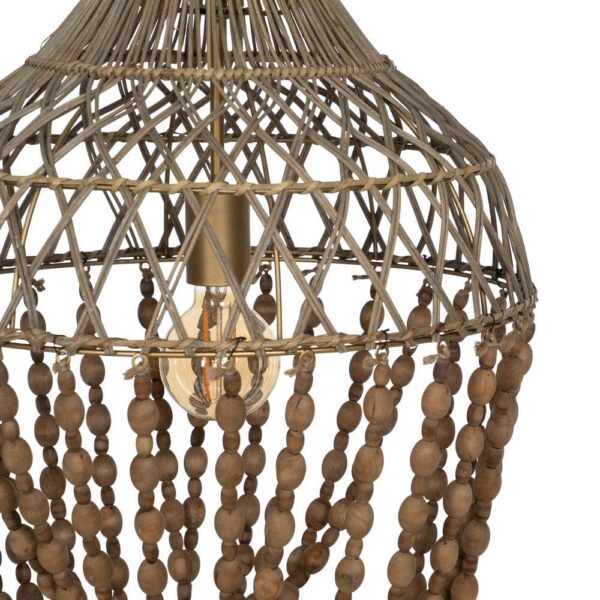 Material: Metal (estructura), madera Dm (cuentas) – ratán. Voltaje: 220-240V. Casquillo: E27. Bombilla: 1x 40W (no incluída). Largo cadena: 70cm. Largo cable: 70cm.