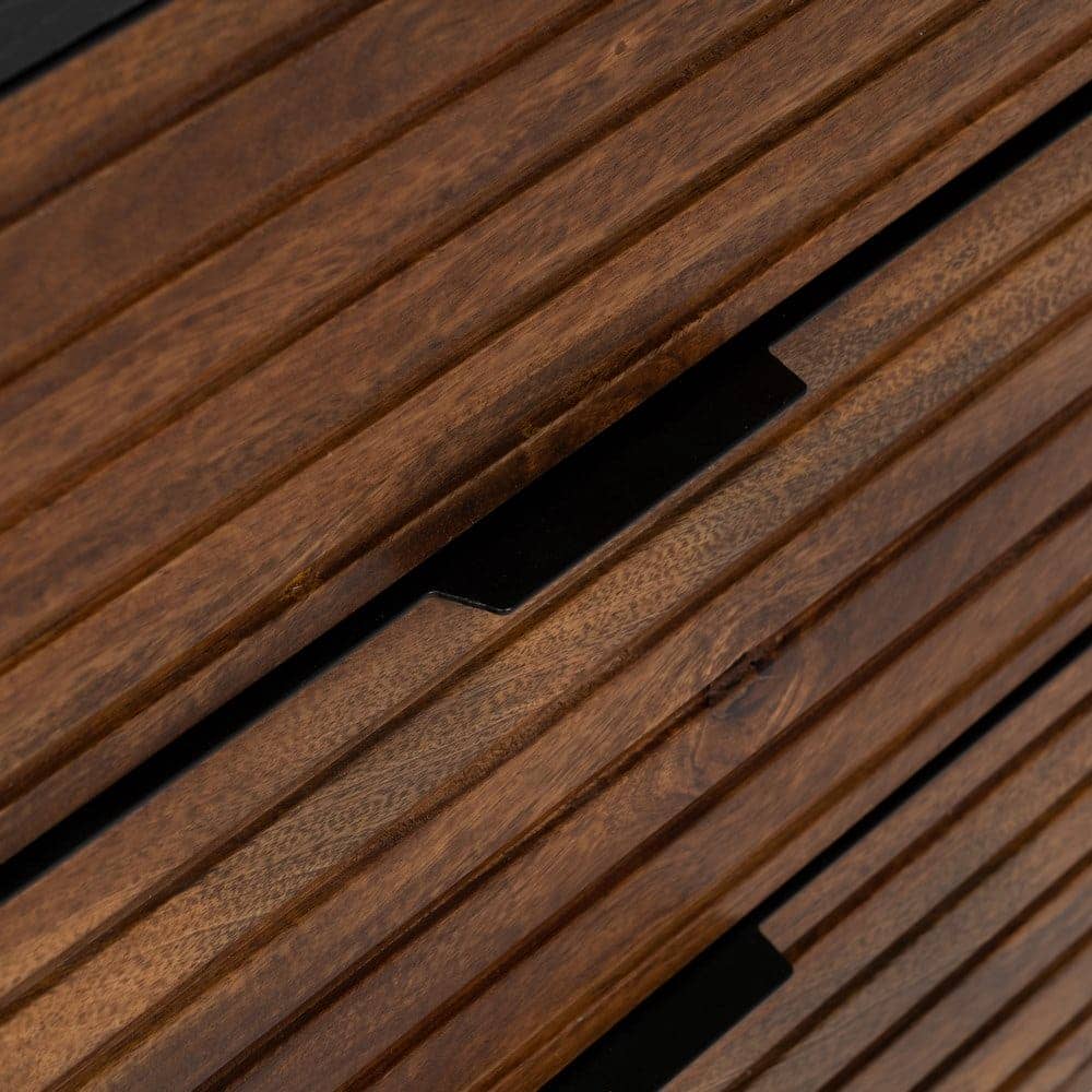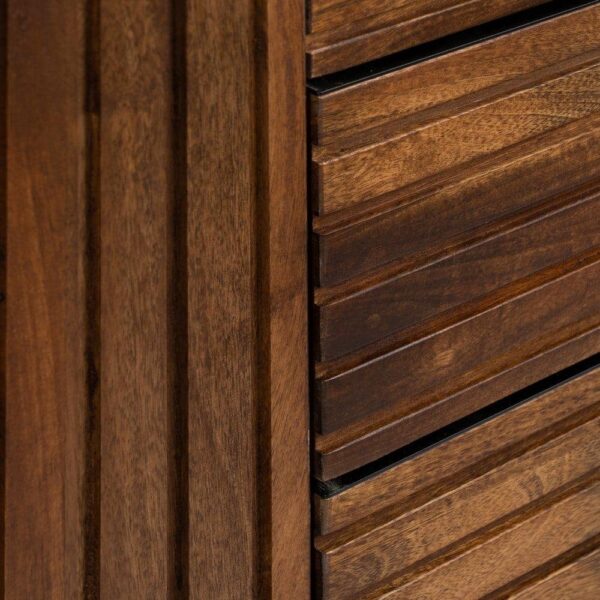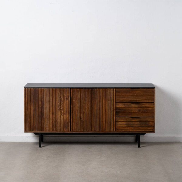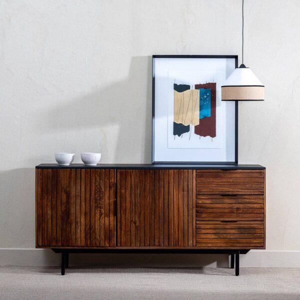 MADERA DE MANGO. MEDIDAS 3 CAJONES:43X30X16CM. INCLUYE DOS BALDAS EN EL INTERIOR. MEDIDA HUECO ENTRE BALDAS: 53X26CM. ALTURA PATAS:20CM. MEDIDA ENTRE LAS PATAS: 119CM. GROSOR DEL TABLERO: 1,5CM.