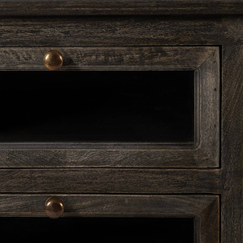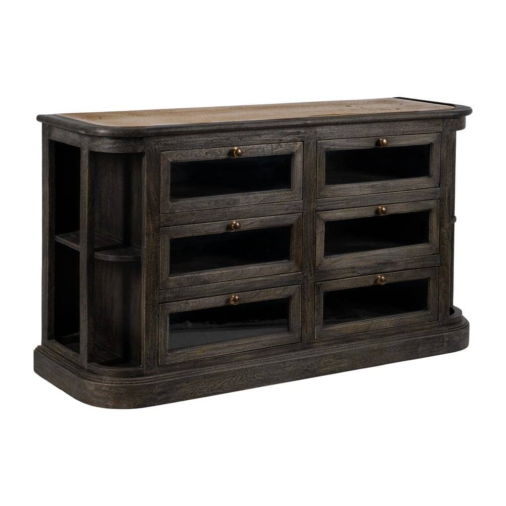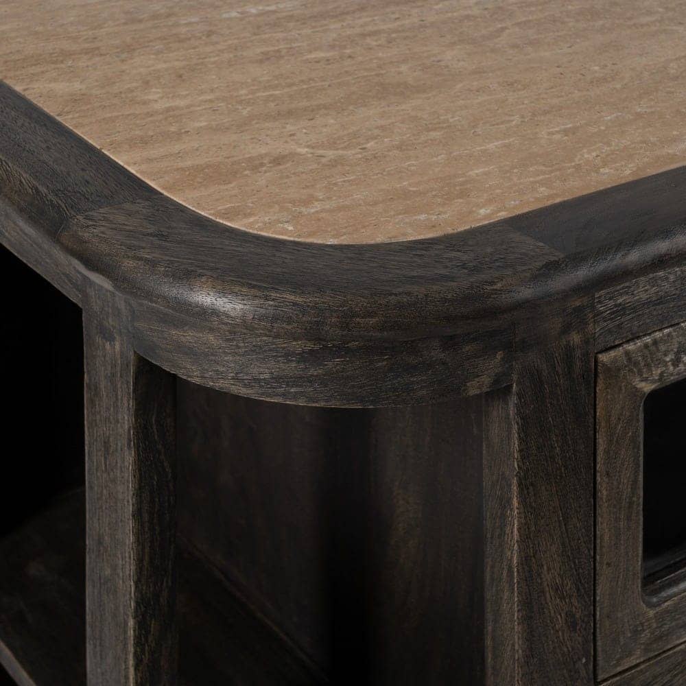 Material: madera de mango, mármol. Cajones: 54x20cm. Altura lejas: 33,5cm. El mármol es un material natural que puede tener variaciones en su aspecto.