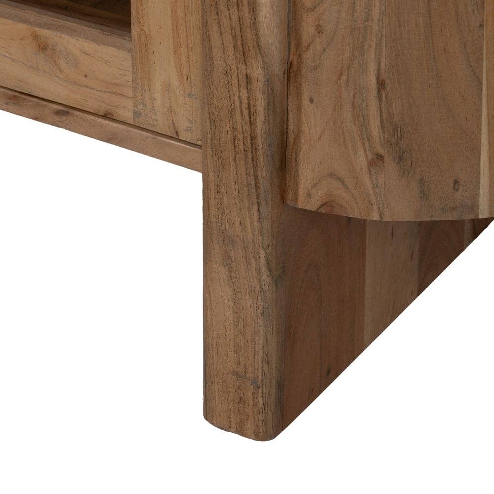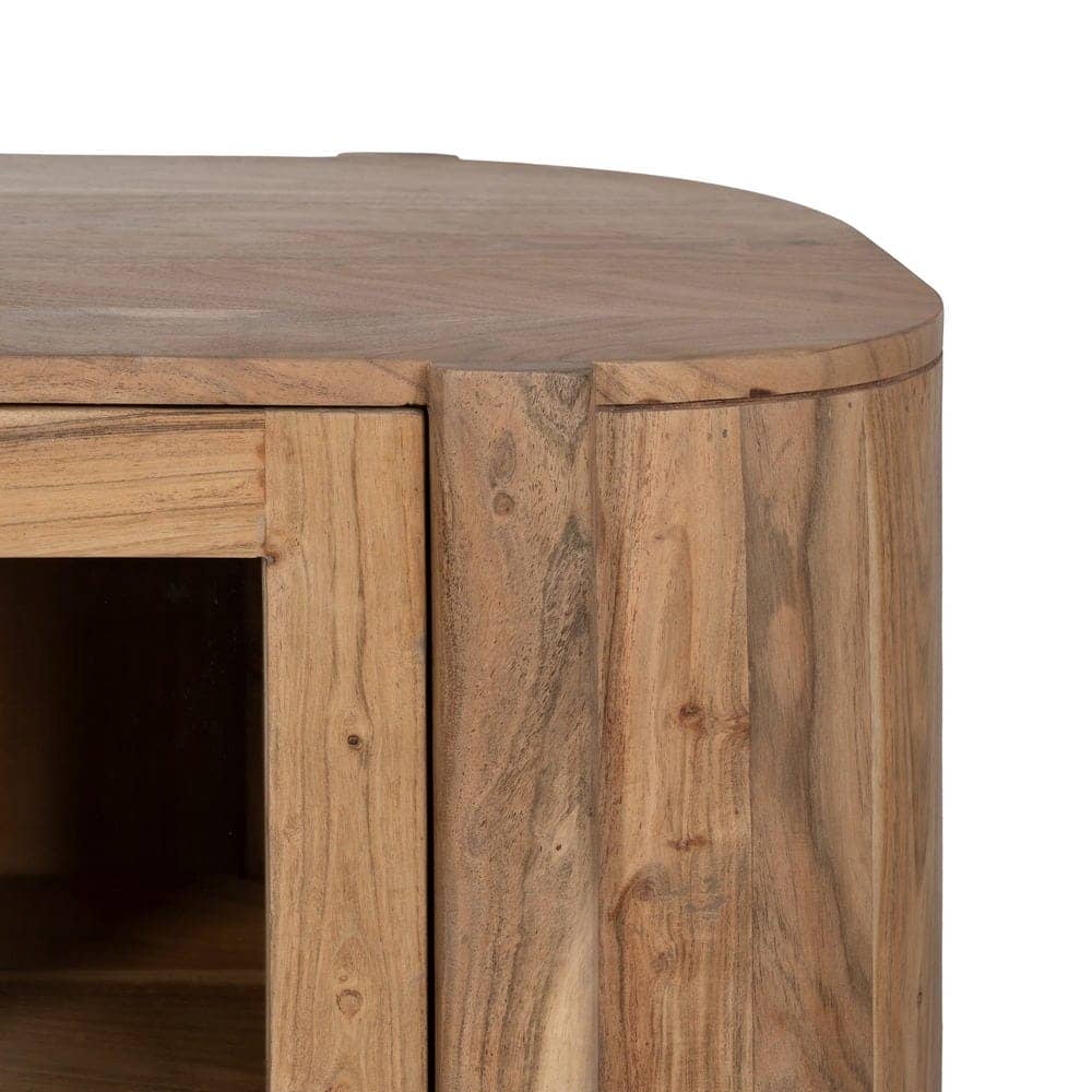 Aparador de Madera Natural de Acacia con Puertas de Cristal – 180 cm, Estilo Elegante y Funcional para tu Hogar