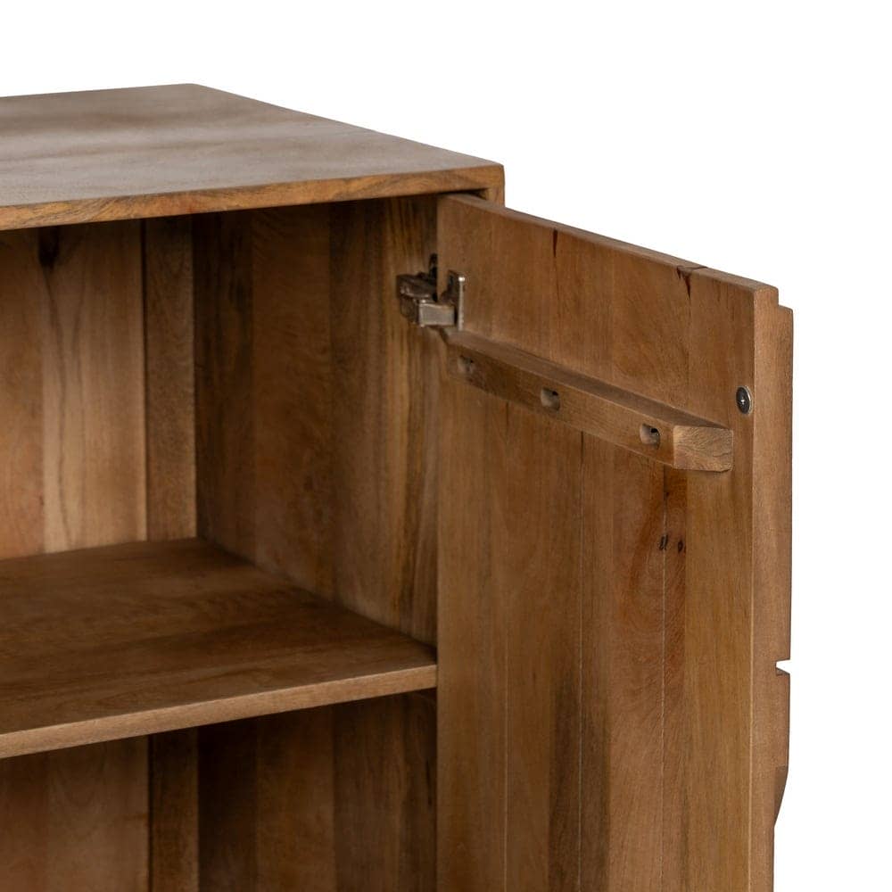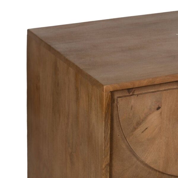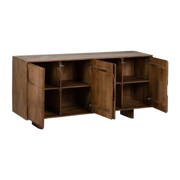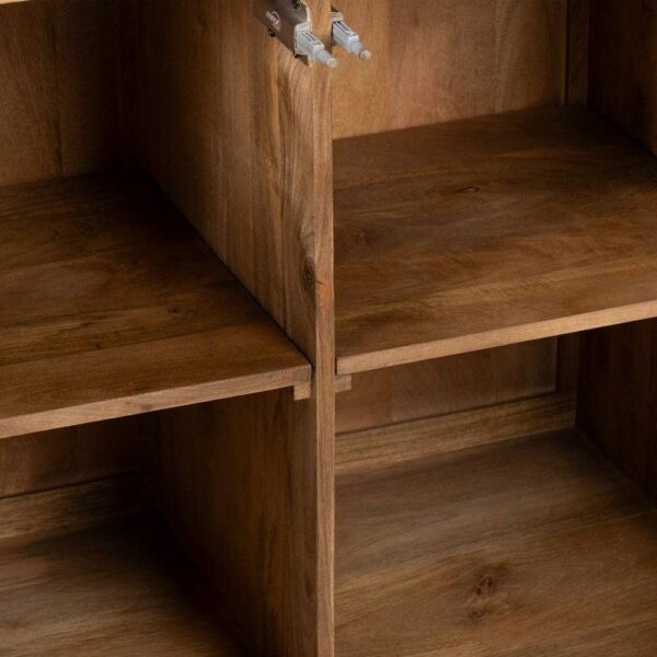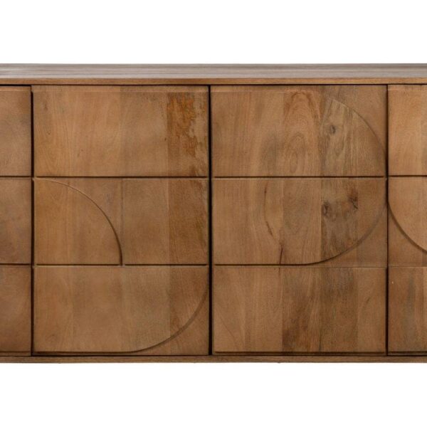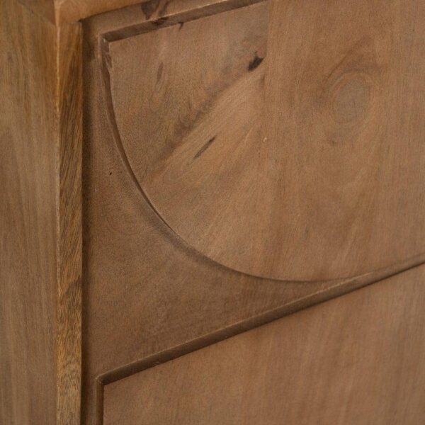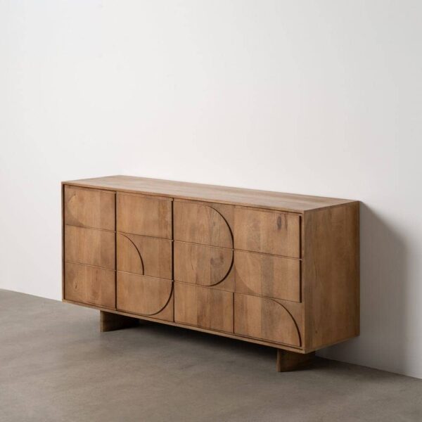 El aparador de salón de madera de mango es una obra de arte funcional. Su diseño de líneas geométricas talladas resalta la belleza natural de la madera de mango, ofreciendo una estética única y elegante. Con unas dimensiones de 171x45x83 cm, este aparador proporciona un amplio espacio de almacenamiento con puertas grandes que facilitan el acceso a su interior, ideal para guardar vajilla, libros o cualquier elemento que desees tener organizado. Las patas de 15 cm añaden ligereza visual al diseño y facilitan la limpieza. Su tono miel cálido lo convierte en una pieza versátil, perfecta para estilos de decoración modernos, rústicos o escandinavos. Transforma tu salón con este aparador exclusivo que combina funcionalidad y diseño excepcional. ¡Hazlo tuyo hoy mismo y añade un toque de distinción a tu hogar!