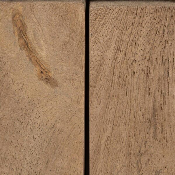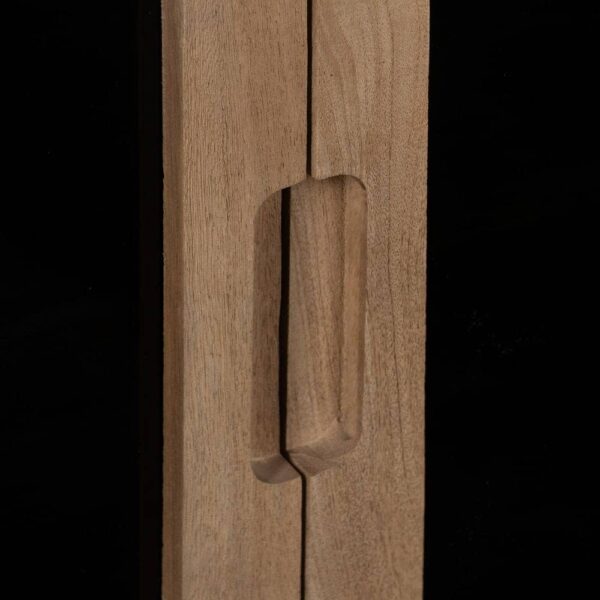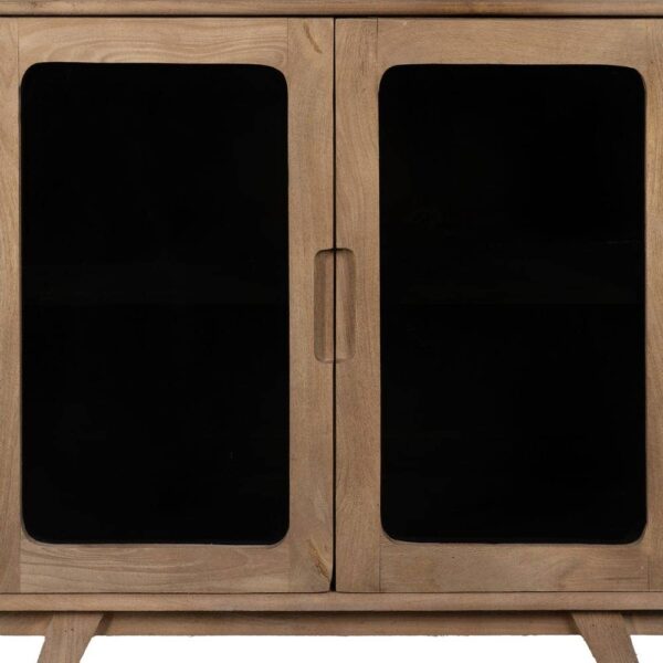 Material: madera de mango, cristal. Puertas: 39x64cm. Altura patas: 15cm.