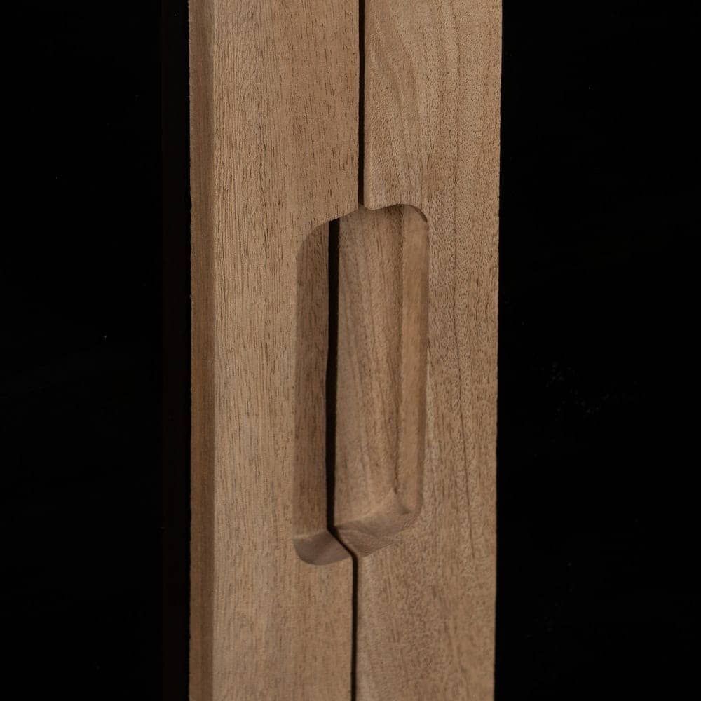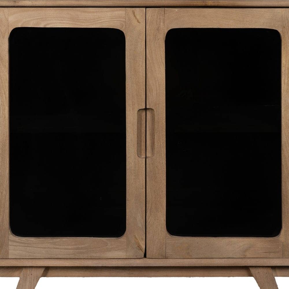 Mueble Auxiliar de Mango Natural con Puertas de Cristal – 83 cm, Estilo Moderno y Funcional