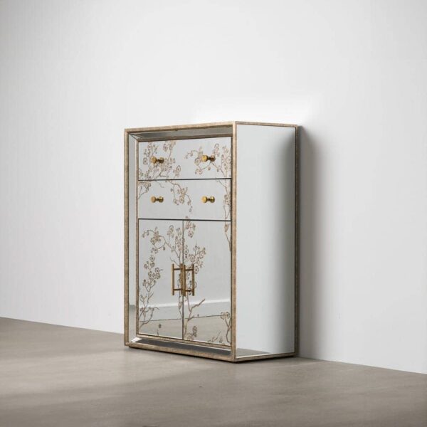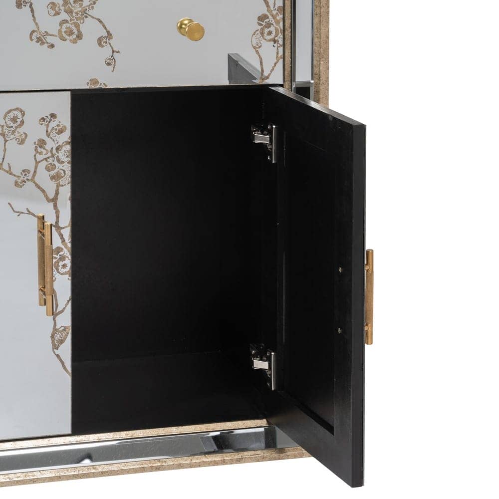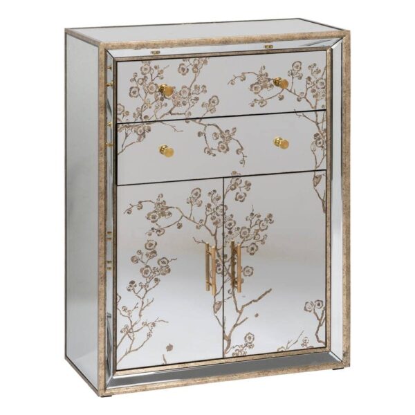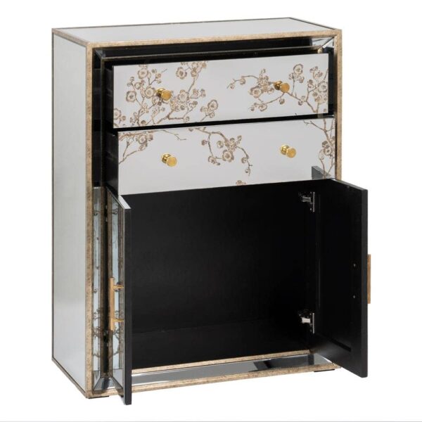 Material: Dm – cristal Medida puertas: 33.5×56.5cm. Medida cajones: 67×18.5cm.