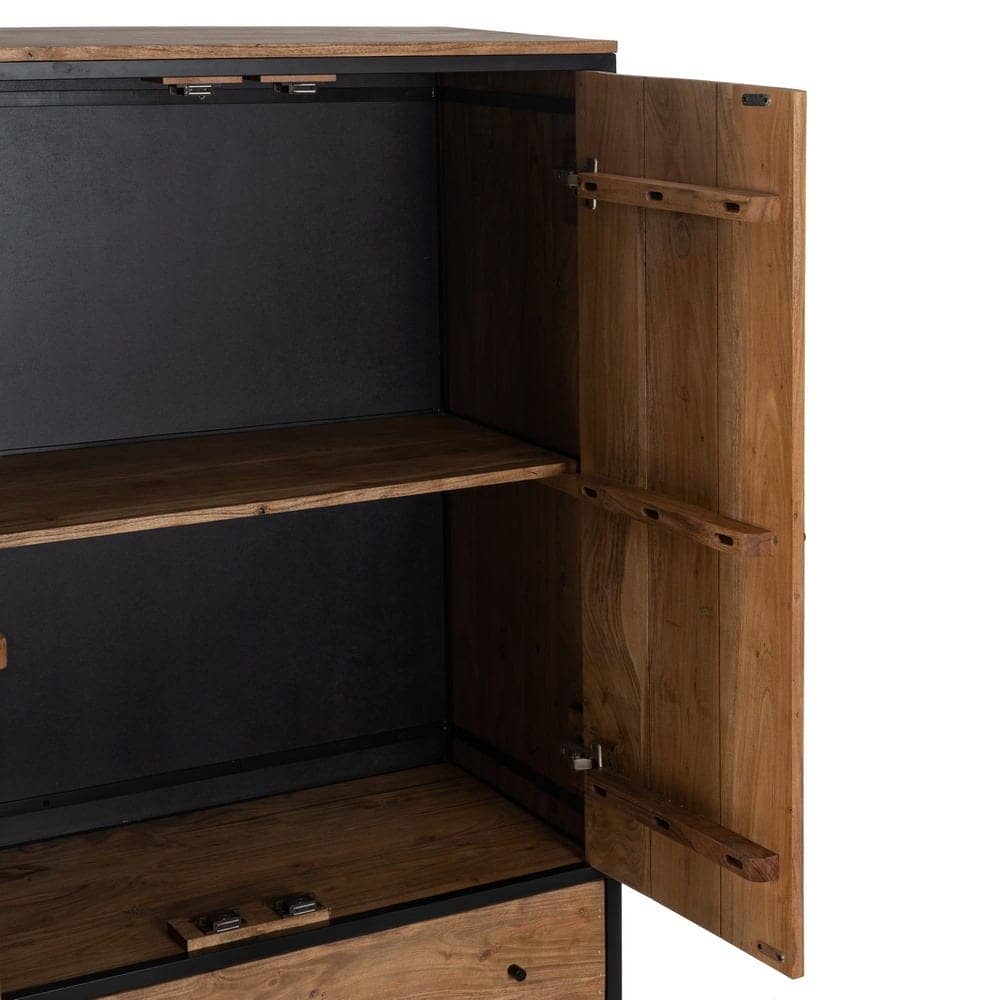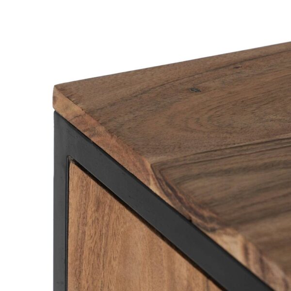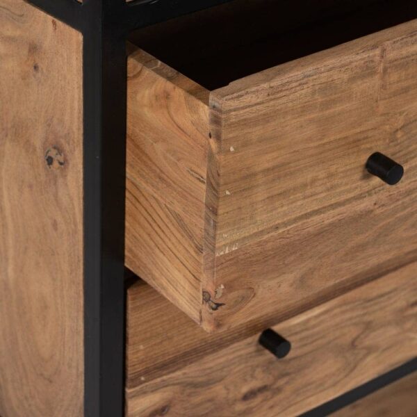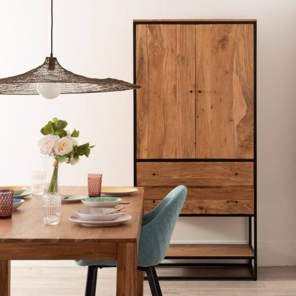 Este exclusivo armario para salón, fabricado en madera de acacia y hierro, destaca por su diseño robusto y elegante. Sus puertas de 42×98,5 cm, cajones de 85,5×18 cm y un hueco con altura de 29 cm ofrecen una solución perfecta para mantener todo en orden con estilo. Las patas de 29 cm no solo añaden ligereza visual, sino que también elevan la pieza para facilitar la limpieza. Su acabado natural y su estructura metálica lo hacen ideal para decoraciones modernas, industriales o rústicas. Esta pieza, además de ser práctica, transforma cualquier estancia en un espacio lleno de personalidad. Descubre la combinación perfecta de funcionalidad y diseño para tu hogar.