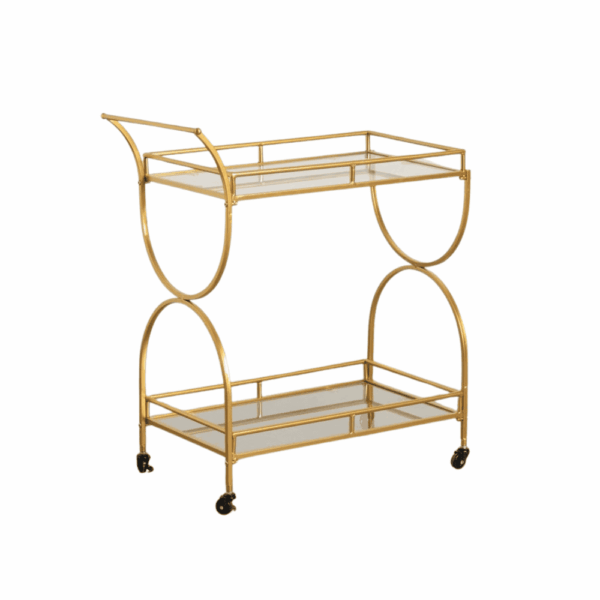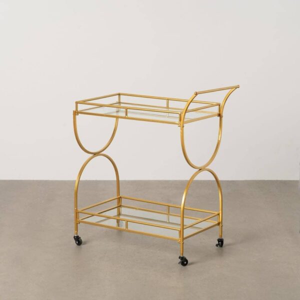 La camarera dorada se adapta a tus necesidades, ya sea en el salón, comedor o en eventos especiales. Con su estilo refinado, revestido en dorado y con el cristal que refleja la luz de manera especial, es el complemento perfecto para tus espacios. Con una estética cuidada y un diseño práctico, no dejes pasar la oportunidad de añadir un toque único a tu hogar o lugar de trabajo.