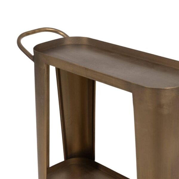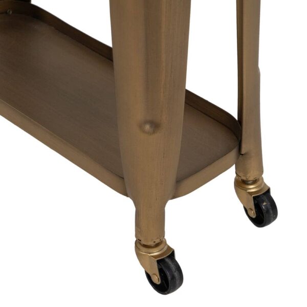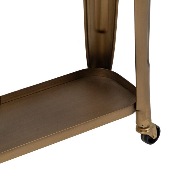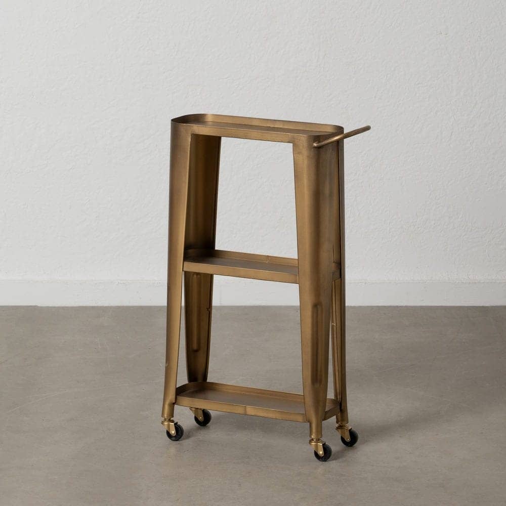 Aporta un toque moderno y sofisticado a cualquier rincón con nuestra Camarera Dorada Metal Loft, una pieza elegante y práctica ideal para decorar y organizar. Su diseño estilizado y acabado dorado envejecido la convierten en un accesorio perfecto para dar carácter a tu hogar. Perfecta para usar como apoyo decorativo o como pequeña camarera móvil gracias a sus ruedas.