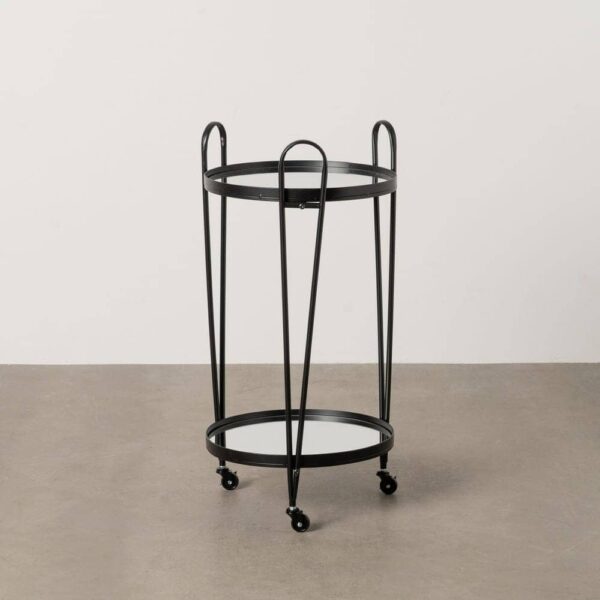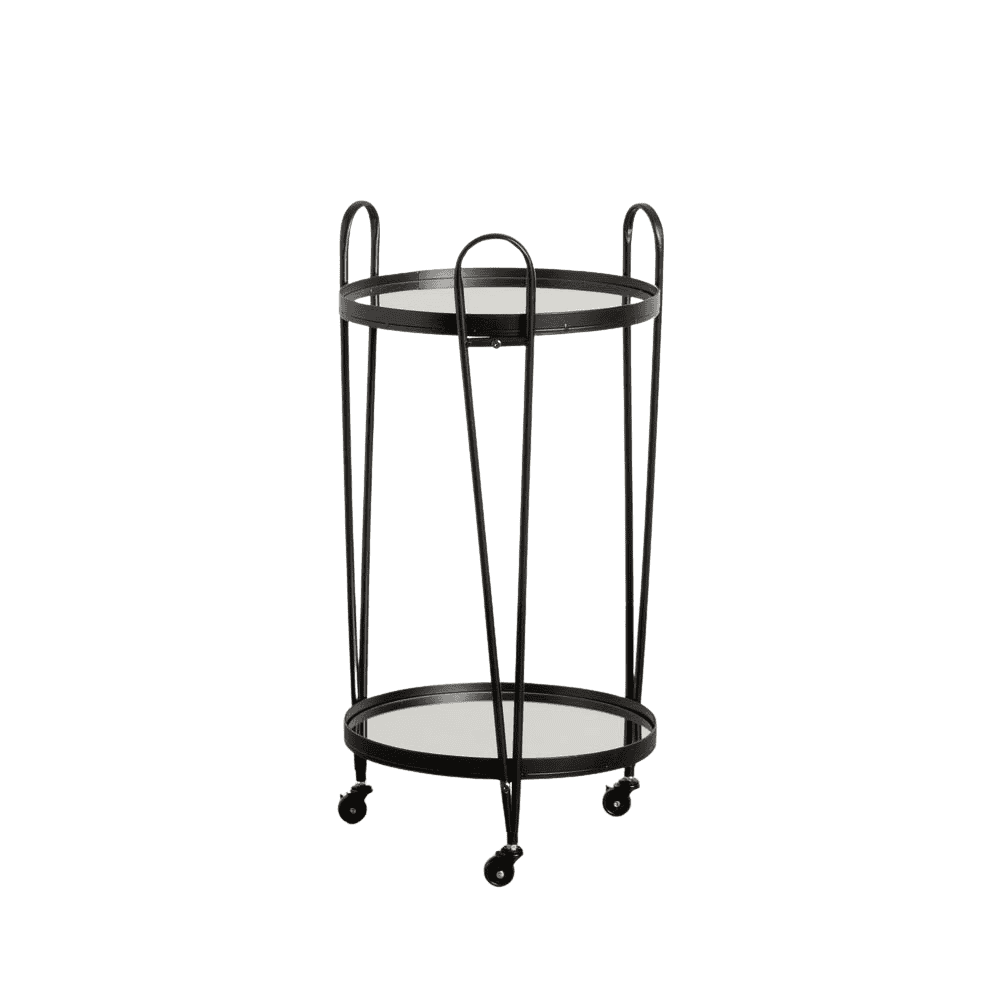 La Camarera Negra en Metal y Cristal es la opción ideal para quienes buscan un mueble elegante y funcional que se adapte a cualquier espacio. Con un diseño versátil, esta camarera está hecha de hierro de alta calidad y sobres de espejo, lo que le otorga un toque moderno y sofisticado. Gracias a sus tres ruedas incorporadas, podrás moverla con facilidad, agregando comodidad a tus momentos de servicio o decoración.