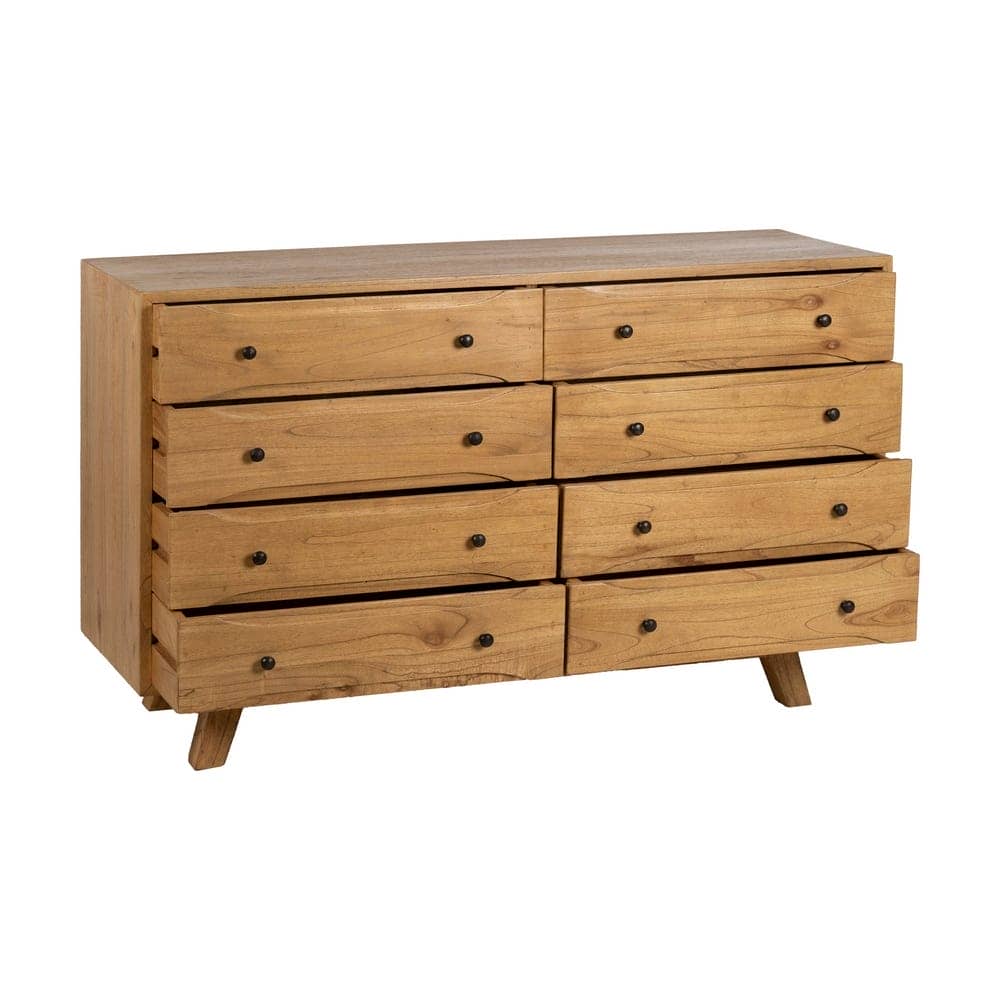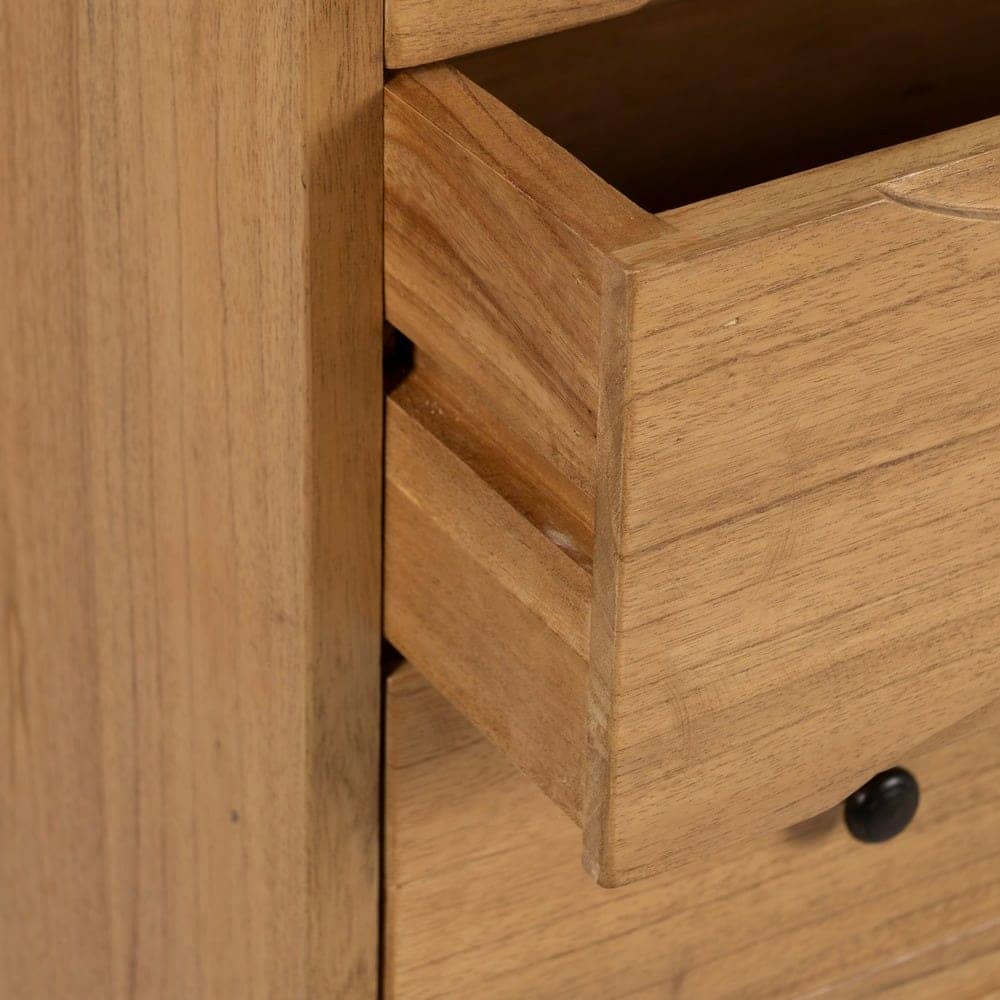 Eleva la decoración de tu hogar con esta cómoda de madera de mindi, una pieza que destaca por su diseño natural y versátil. Fabricada en madera mindi de alta calidad, combina estilo y durabilidad para ofrecerte un mueble que acompaña cualquier ambiente, desde dormitorios hasta salones. Con unas medidas de 140 cm x 45 cm x 85 cm, ofrece un espacio de almacenamiento ideal gracias a sus cajones amplios de 68 x 16,5 cm. Su tonalidad natural crea un ambiente cálido y acogedor, mientras que sus patas de 14 cm aportan un toque contemporáneo y facilitan la limpieza. Este mueble, con un peso de 52 kg, garantiza estabilidad y resistencia a largo plazo. Redescubre la organización y el estilo con una cómoda que no solo complementa tu espacio, sino que también realza su elegancia. ¡No dejes pasar la oportunidad de integrarla en tu hogar!