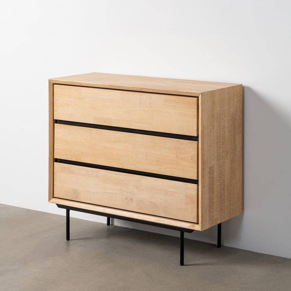 Material: estructura principal madera de caucho – Dm – metal. Patas: hierro (negro) Altura patas: 17cm. Medida cajones: 83x19cm. Patas para montar.