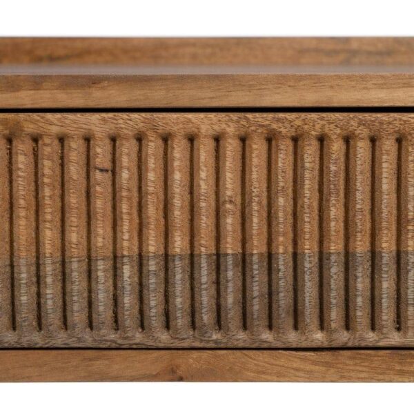 Material: madera de mango – trasera e interiores de los cajones Dm. Altura patas:60,5cm. Medida cajón:52x42x10,5cm Medida hueco:53,5x11cm. Las patas requieren montaje.