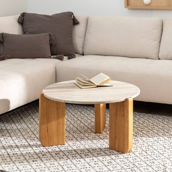 Mesa Centro de Mármol Blanco y Madera de Roble 72,5 cm – Elegancia y Diseño Exclusivo para tu Salón