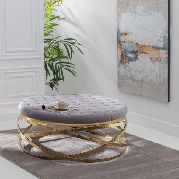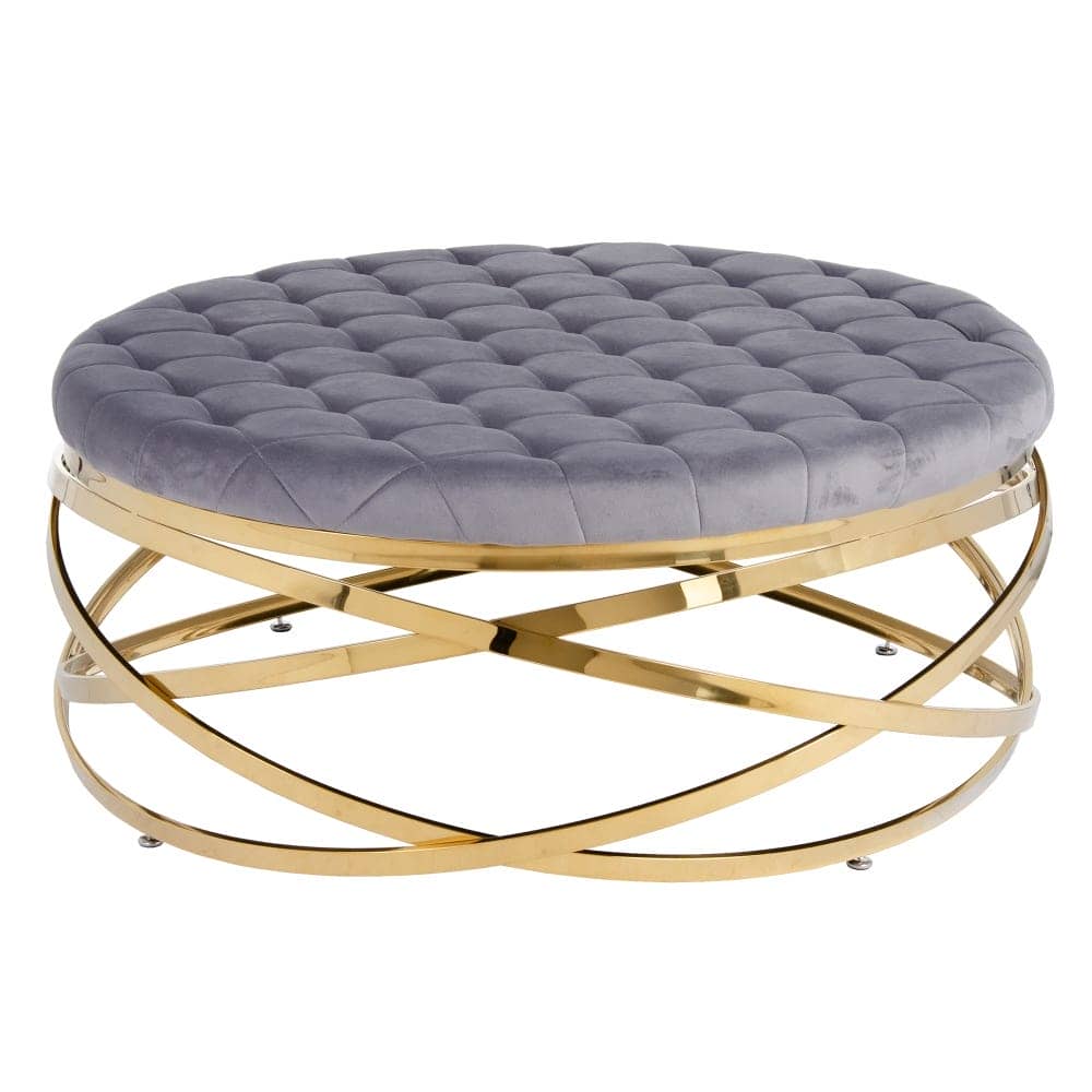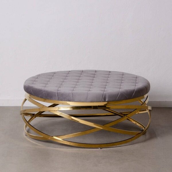 Mesa Centro Gris 110x110x43 cm con Patas Doradas y Estructura de Acero Inoxidable
