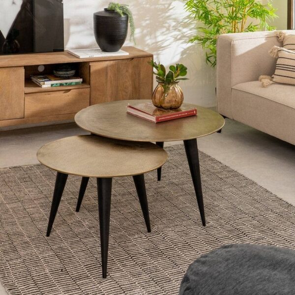El diseño minimalista de esta mesa resalta por su acabado dorado que aporta un aire de lujo, mientras que el color negro asegura que encaje perfectamente en cualquier decoración moderna o ecléctica. Ligera pero resistente, esta mesa es la opción perfecta para aquellos que buscan añadir un toque de refinamiento a su hogar sin comprometer la funcionalidad. Su diseño es perfecto para complementar tanto muebles clásicos como contemporáneos, creando un ambiente elegante y acogedor. Atrévete a añadirla a tu espacio y transforma tu salón con esta pieza que es todo un símbolo de exclusividad.