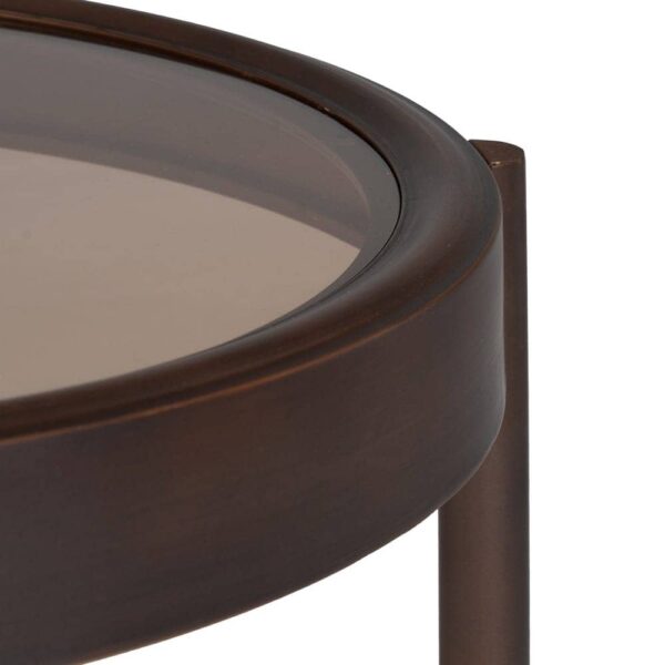 Mesa de Centro de Hierro y Cristal Marrón Oscuro 75x75x46 cm