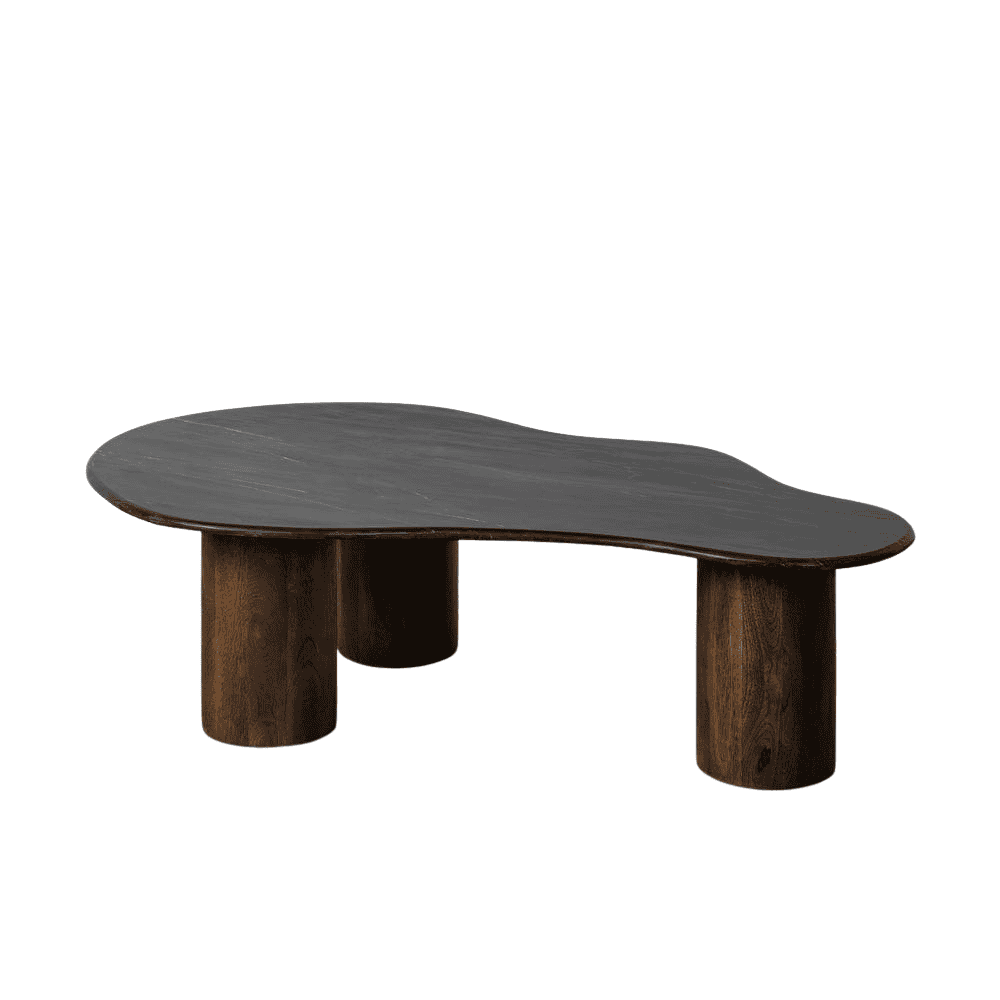 Mesa de Centro de Madera de Mango y Mármol Negro-Marrón 135x80x37 cm