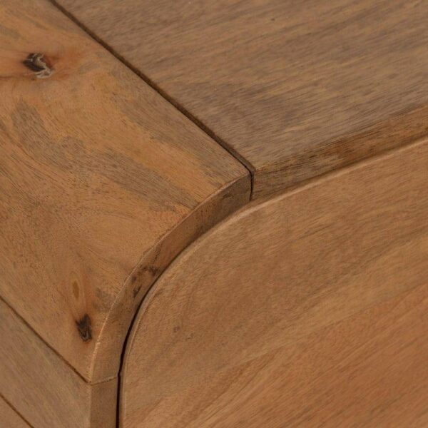 Cuenta con un cajón de 58×16 cm y un hueco de 58×16,5 cm, proporcionando un excelente espacio de almacenamiento para mantener tu salón ordenado y libre de objetos visibles. Las patas de 22 cm le dan un aspecto moderno y limpio, elevando la mesa de forma sutil para crear un entorno equilibrado. Con un peso de 24 kg, ofrece la durabilidad que solo la madera de mango puede garantizar.