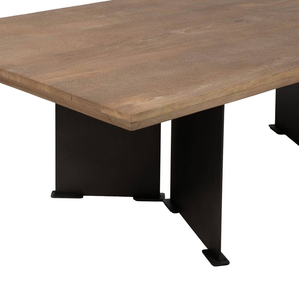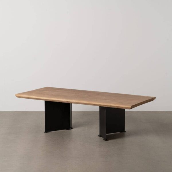 Un diseño robusto y sofisticado define esta mesa de centro de madera natural y hierro. Su tablero de 4 cm de grosor aporta solidez, mientras que las patas de hierro negro añaden un toque industrial elegante. Perfecta para un salón contemporáneo con carácter. ¡Descúbrela ahora!
