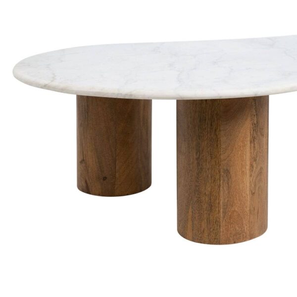 El mármol blanco es un material natural que presenta variaciones en su aspecto, lo que hace de cada mesa una pieza única e irrepetible. Perfecta para dar vida a tu salón, esta mesa de centro se adapta a cualquier decoración, desde ambientes modernos hasta estilos más tradicionales. Su robusta base de madera de mango asegura estabilidad y durabilidad, mientras que el elegante contraste entre el blanco del mármol y el tono cálido de la madera, la convierte en un punto focal en cualquier habitación. Apuesta por la calidad y el diseño con esta mesa, que no solo enriquece tu espacio, sino que también ofrece una gran resistencia y estilo atemporal.
