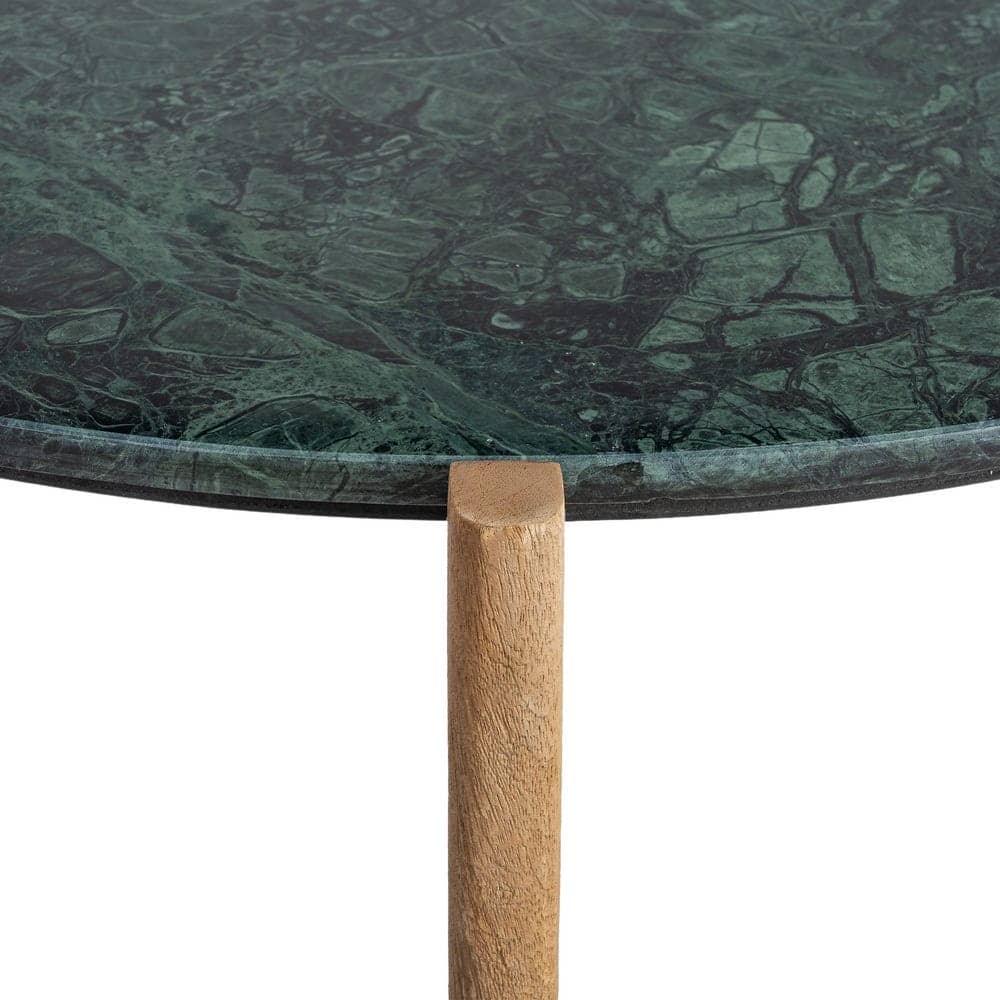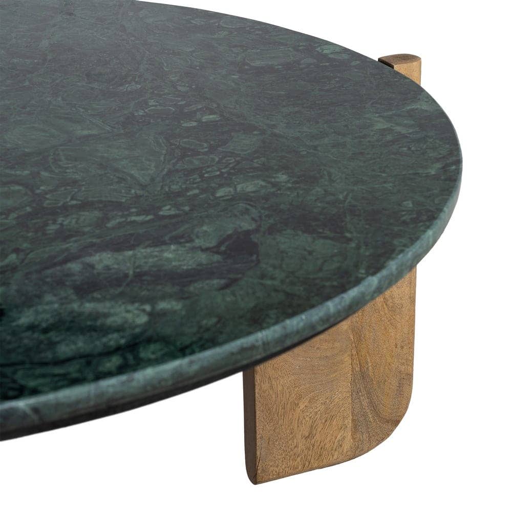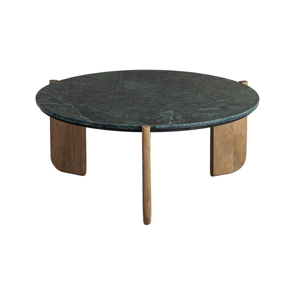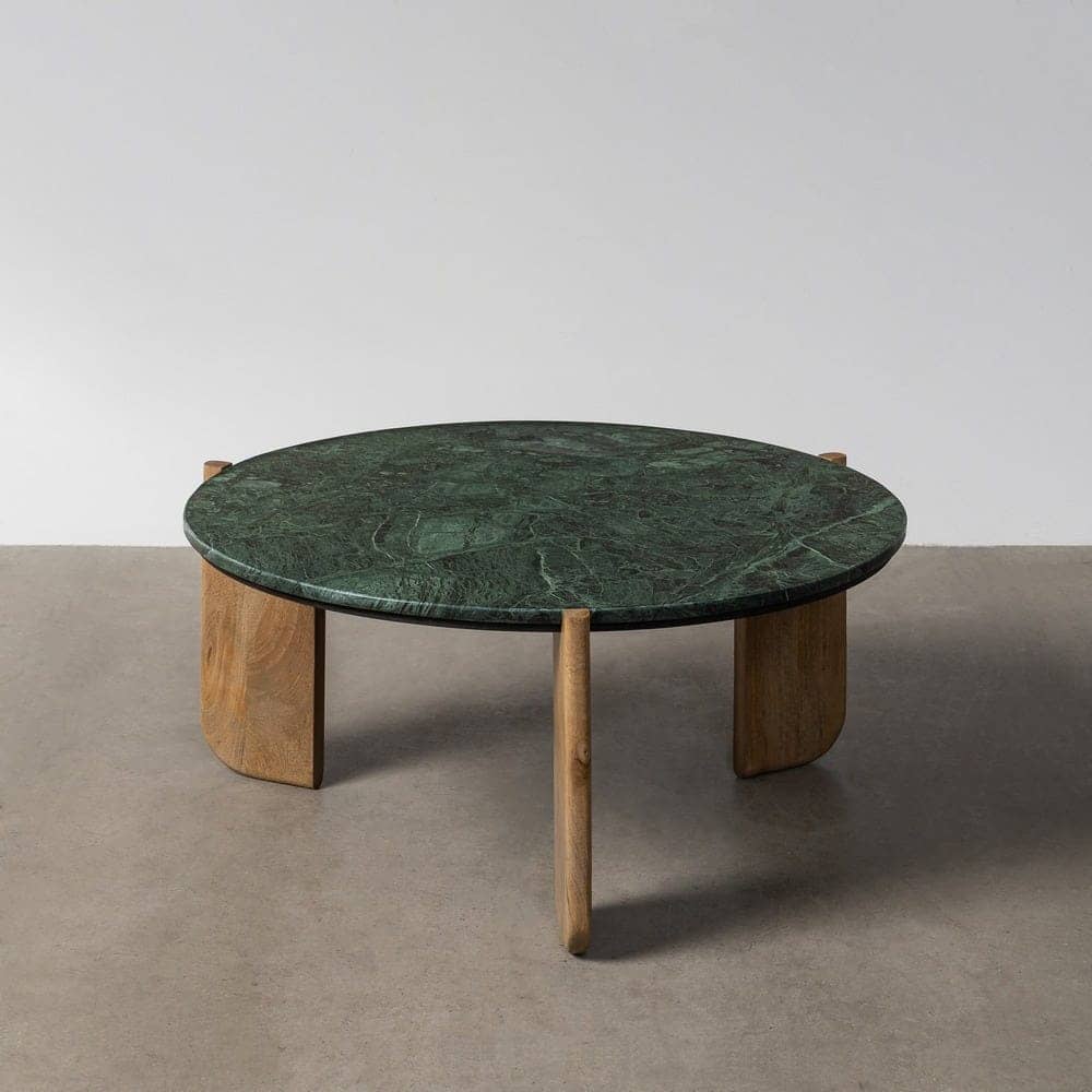 Mesa de Centro Natural Verde de Madera de Mango y Mármol 80x80x35 cm