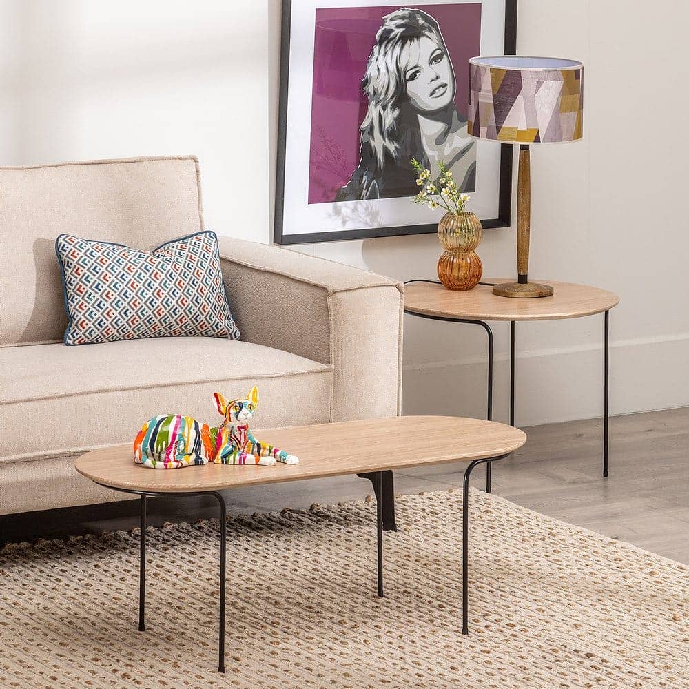 Material: top Dm forrado de vinilo natural imitación roble – patas de hierro Altura patas: Precista montaje.