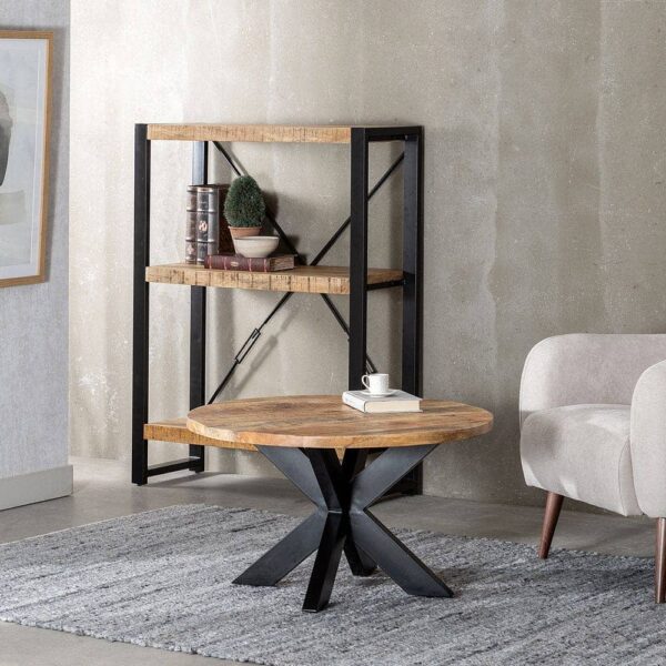 Mesa de Centro Natural y Negra de Madera de Mango – Diseño Elegante y Rústico 80x80x45 cm para Salones Modernos