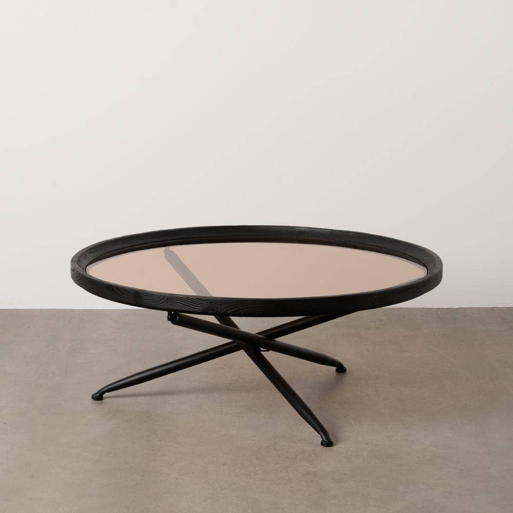 Con un diseño contemporáneo y elegante, esta mesa de centro combina un sobre de cristal templado con una estructura de madera de abeto y hierro negro. Su estilo sofisticado y versátil es perfecto para añadir un toque moderno a cualquier salón. Dimensiones ideales de 100x100x40 cm.