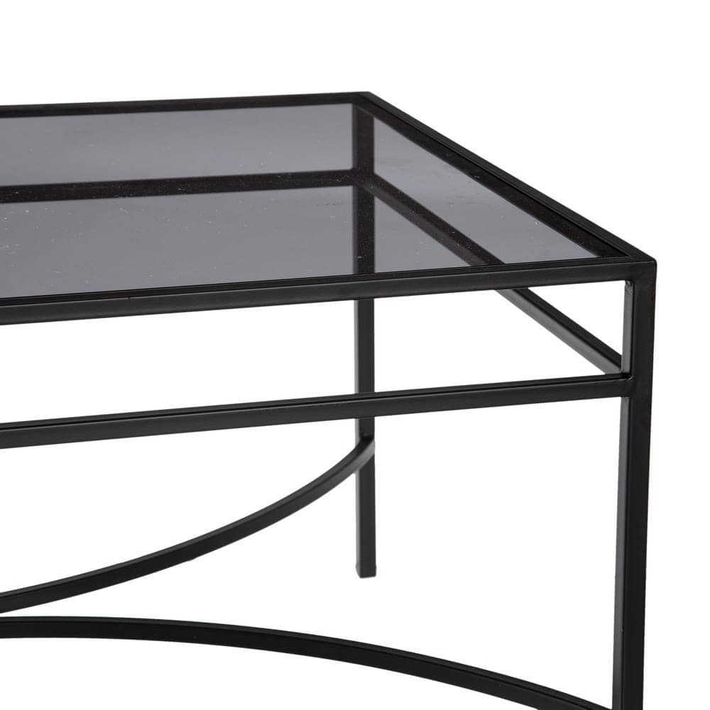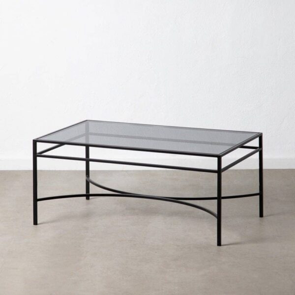 Mesa de Centro Negra de Metal y Cristal Gris 100x60x45,5 cm