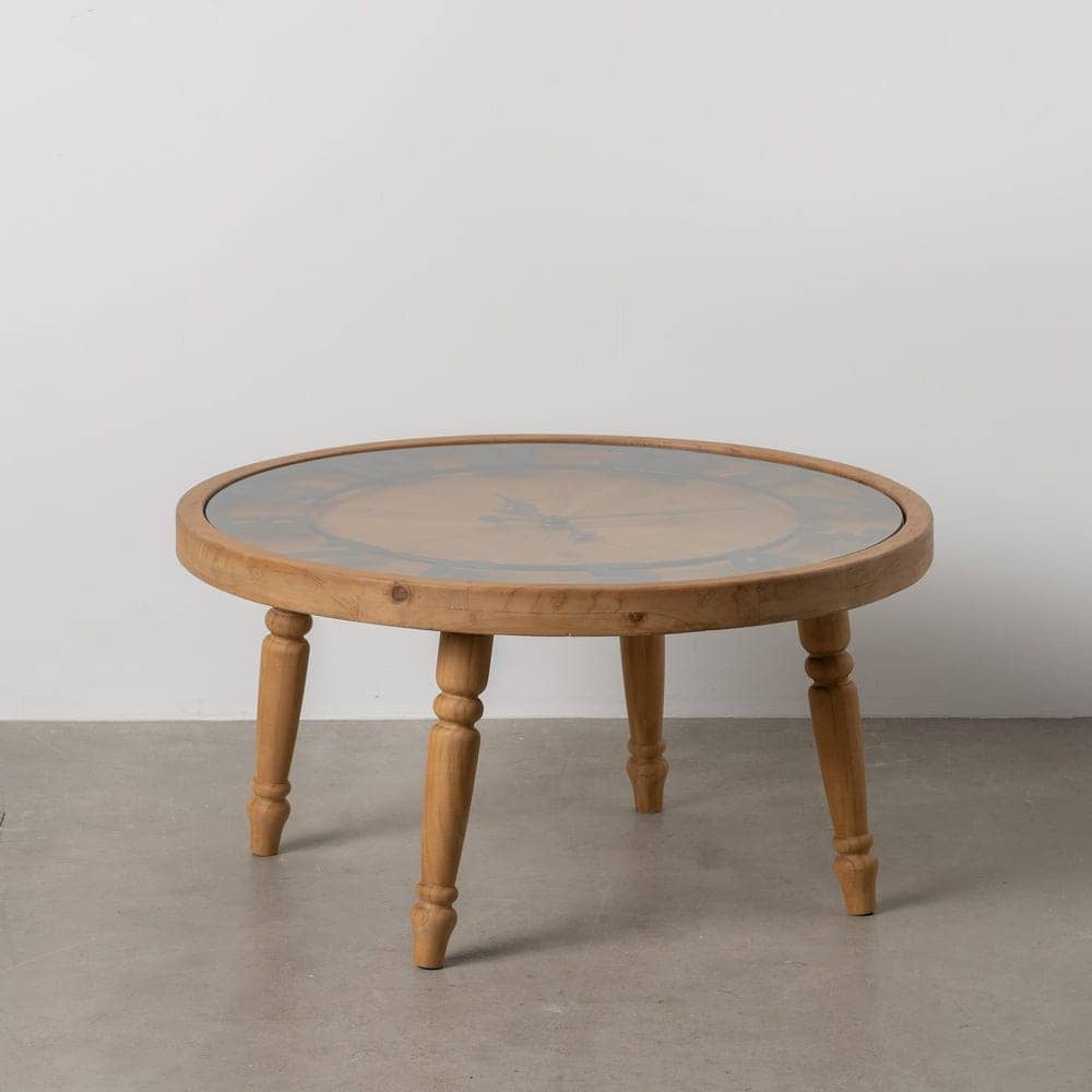 Mesa de Centro Reloj Natural de Madera de Abeto 80 cm – Diseño Rústico y Funcional para Salón