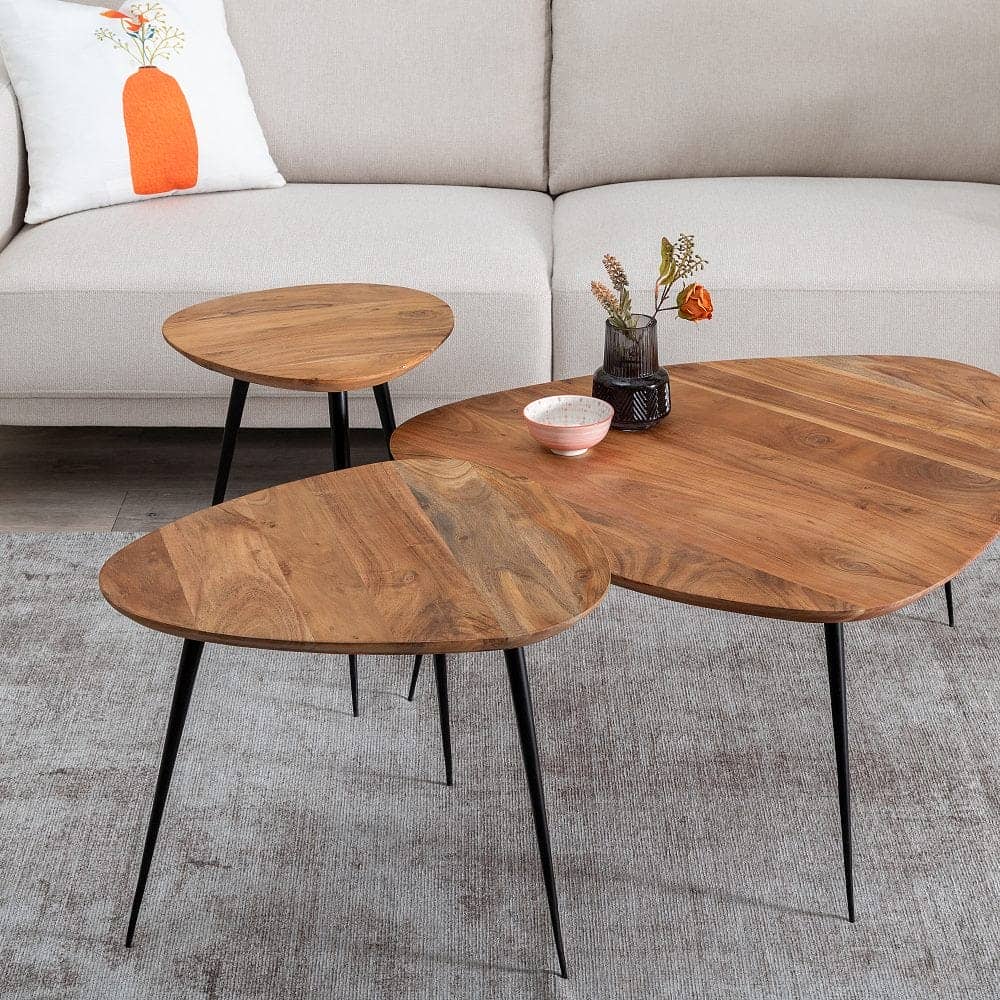 La madera de acacia aporta una calidez única al ambiente, mientras que el hierro garantiza resistencia y un toque moderno. Este set es perfecto para cualquier salón o espacio de descanso, adaptándose fácilmente a diferentes configuraciones y tamaños de habitación. Las patas de cada mesa requieren montaje, lo que facilita su transporte y ensamblaje. Si buscas una pieza que combine elegancia y durabilidad, este set de mesas de centro será la elección perfecta para tu hogar, ofreciendo no solo belleza, sino también una funcionalidad excepcional en cada detalle.