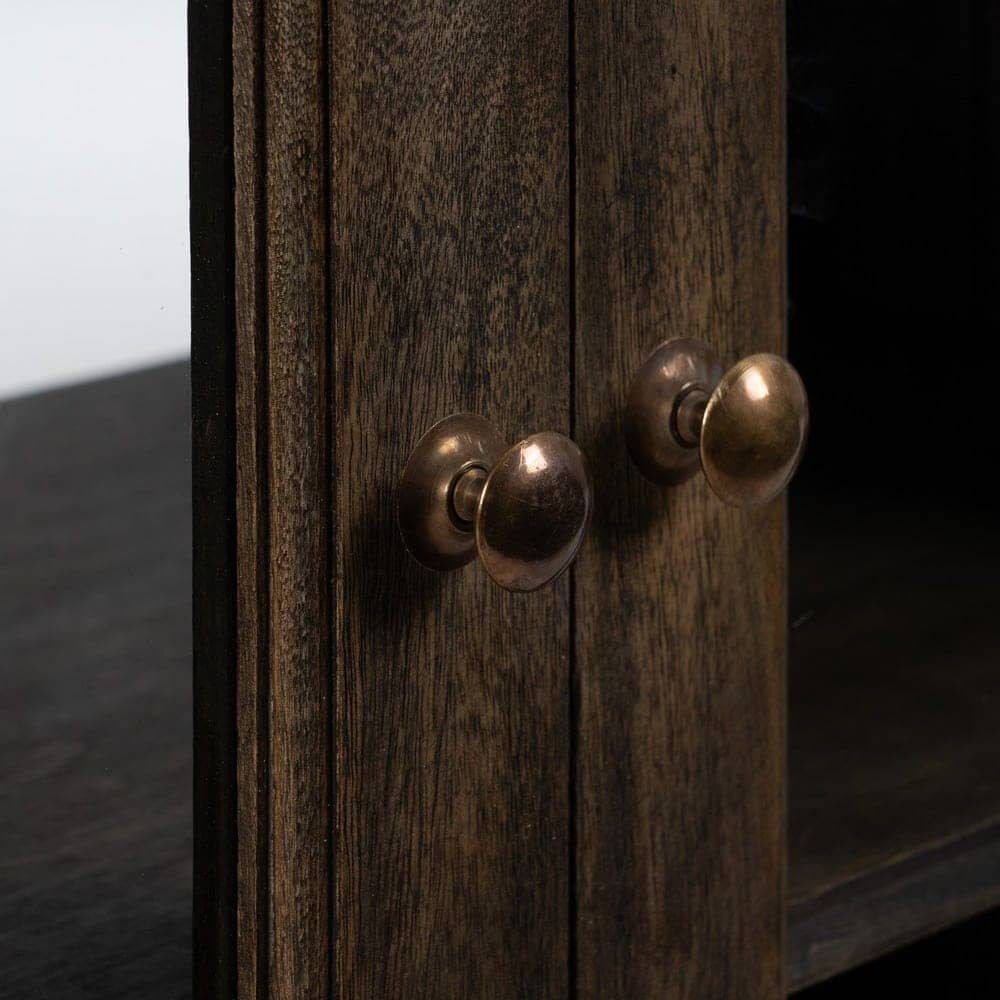 Material: madera de mango, mármol. Puertas: 40×62,5cm. Altura lejas: 20cm. El mármol es un material natural que puede tener variaciones en su aspecto.