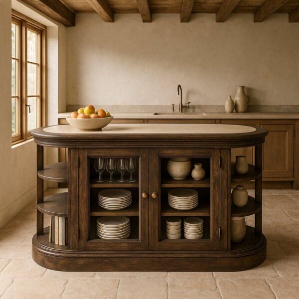 Isla de Cocina de Madera de Mango y Mármol 140x50x80 cm