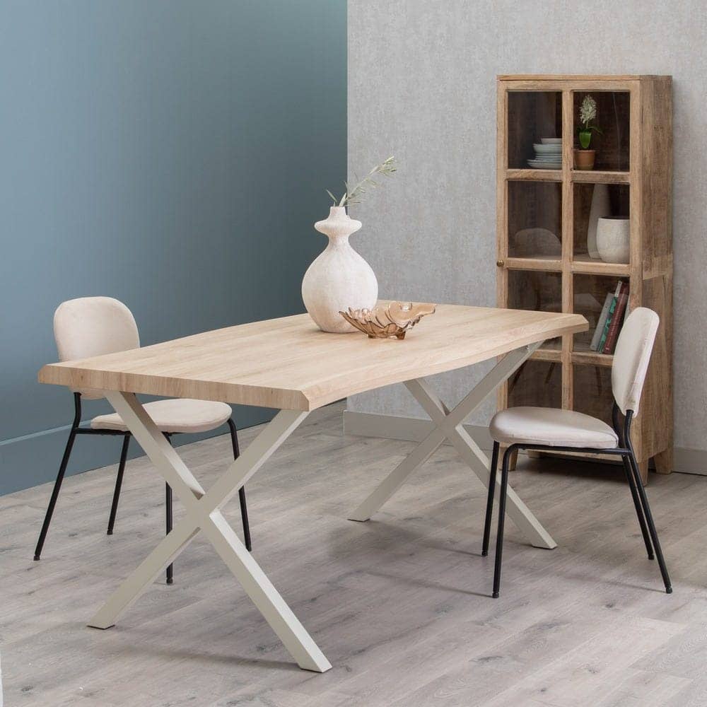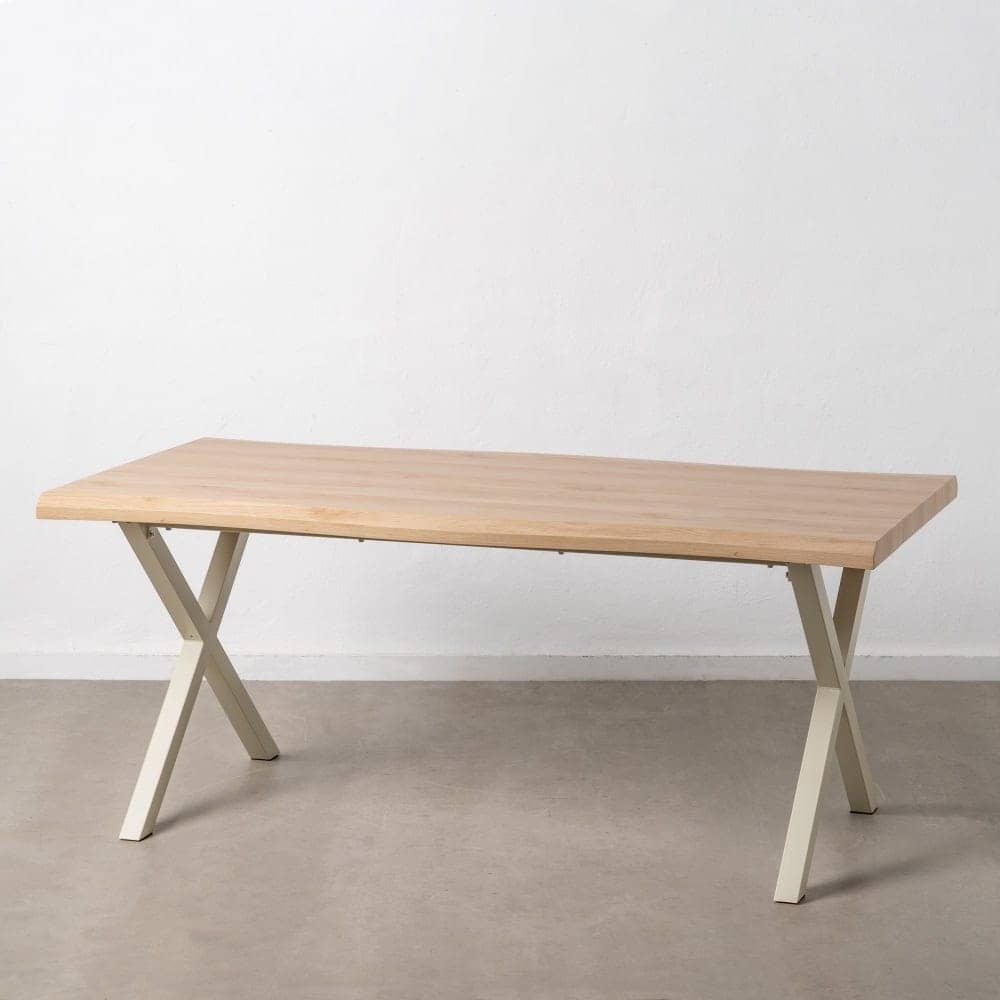 Con unas dimensiones de 180 x 90 x 75 cm, esta mesa de comedor combina funcionalidad y estética en una pieza única. El tablero de DM en acabado natural aporta una sensación cálida y acogedora, mientras que las patas de hierro en tono crema garantizan estabilidad y un toque de ligereza visual. Su grosor de 5,5 cm asegura durabilidad, siendo ideal para reuniones familiares o cenas con amigos. Este diseño versátil encaja perfectamente en decoraciones modernas, nórdicas o minimalistas, convirtiéndose en el centro de atención de tu comedor. Con un peso de 45 kg, esta mesa es una opción robusta y sofisticada para tu hogar. ¡Renueva tu espacio y disfruta de momentos inolvidables con esta pieza exclusiva!