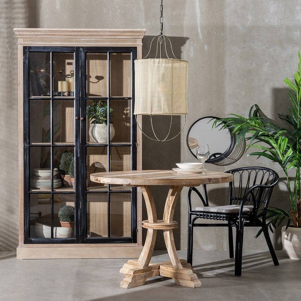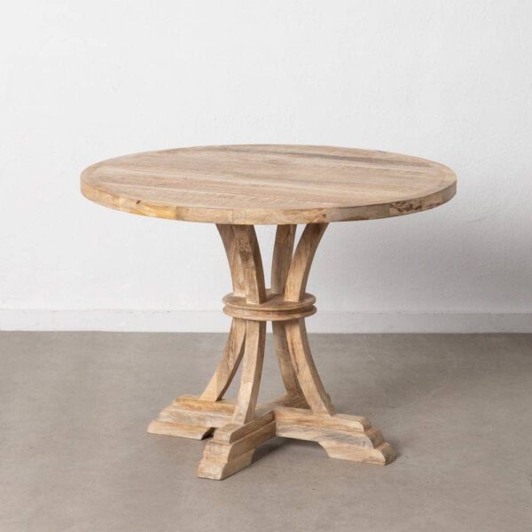Esta mesa de comedor redonda, con un diámetro de 100 cm y un grosor de tablero de 4 cm, es ideal para transformar cualquier espacio en un lugar especial. Fabricada en madera maciza de mango, destaca por su robustez y autenticidad, mientras que el acabado blanco rozado añade un toque de elegancia rústica. Su diseño artesanal garantiza una superficie única, con ligeras irregularidades que reflejan su carácter hecho a mano. Perfecta para comedores pequeños o rincones acogedores, esta mesa combina funcionalidad y estilo. Su base tallada en madera asegura estabilidad y aporta un diseño clásico que nunca pasará de moda. Haz de esta mesa el centro de tus reuniones y disfruta de momentos inolvidables. ¡Es el complemento perfecto para quienes buscan un mueble con personalidad!