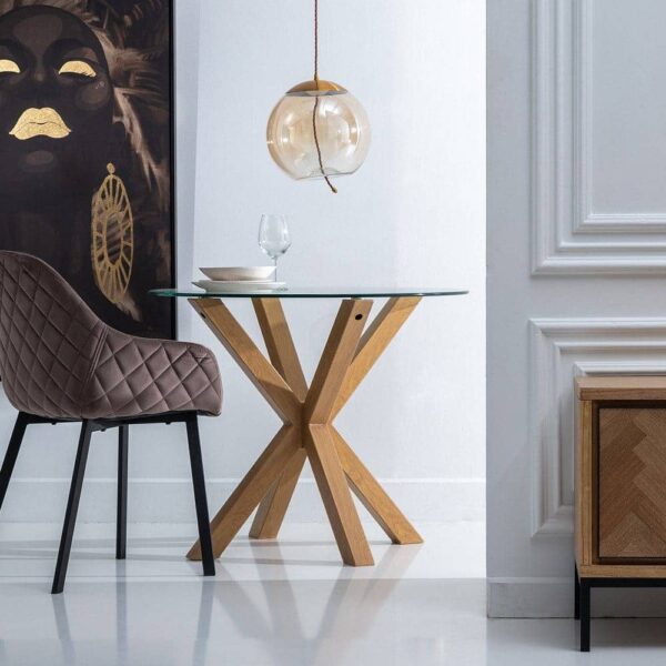Esta mesa de comedor destaca por su diseño compacto y funcional. Fabricada con un sobre de cristal templado de 10 mm, garantiza resistencia y elegancia, mientras que su estructura de metal (hierro) aporta estabilidad y un toque contemporáneo. Con unas medidas de 90 cm x 90 cm x 76 cm, es perfecta para espacios pequeños, ideal para hasta cuatro comensales. Su acabado en color natural se adapta a una amplia variedad de estilos decorativos, desde modernos hasta escandinavos. Aunque precisa montaje, el resultado final compensa con creces, ofreciendo una pieza robusta y con mucho carácter. Fácil de mantener, esta mesa es perfecta para quienes buscan una combinación de estilo y funcionalidad. Dale un aire fresco a tu comedor con esta mesa que redefine el diseño compacto y elegante. ¡Hazla tuya hoy mismo!