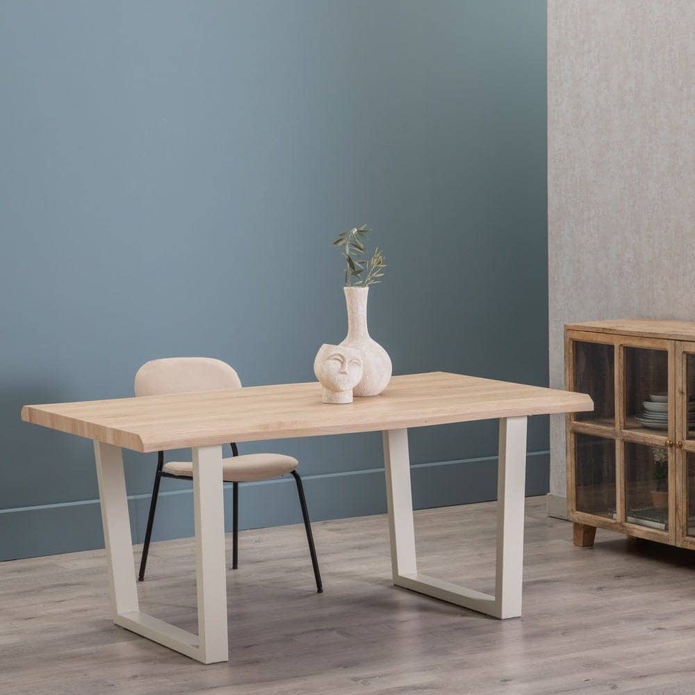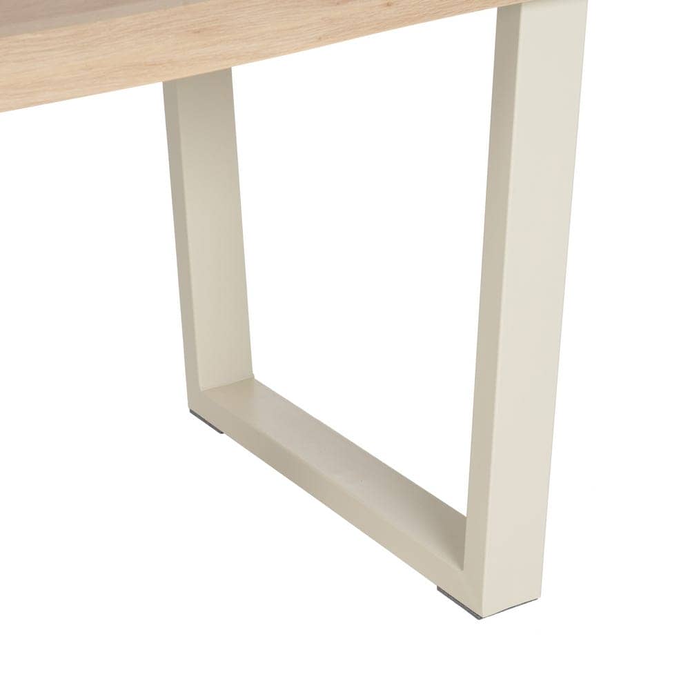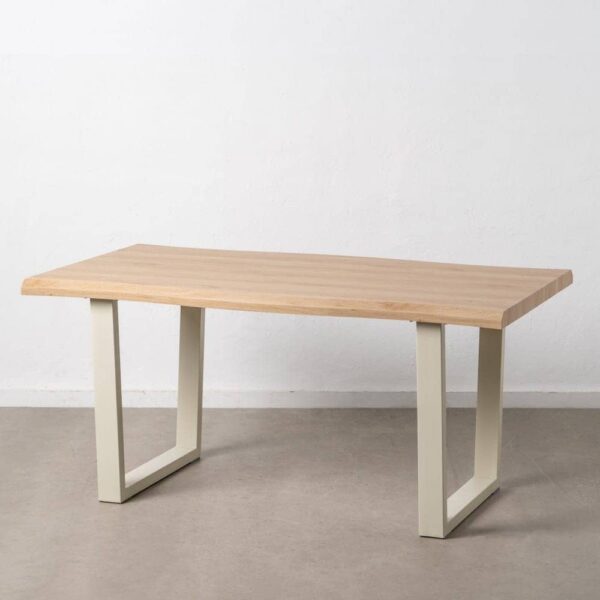 Con unas medidas de 160 x 90 x 75 cm y un espacio de 100 cm entre patas, esta mesa de comedor combina elegancia y practicidad. El tablero de DM en acabado natural aporta calidez, mientras que las patas metálicas en color crema proporcionan estabilidad y un diseño moderno. Su generoso grosor de 5,5 cm garantiza durabilidad y presencia, convirtiéndola en el centro ideal para reuniones familiares o cenas con amigos. Perfecta para decoraciones escandinavas, minimalistas o contemporáneas, esta mesa ofrece un estilo atemporal que se adapta a cualquier espacio. Con un peso de 32 kg, es fácil de integrar en tu hogar, aportando calidad y sofisticación. ¡Renueva tu comedor hoy mismo con esta pieza exclusiva y versátil!
