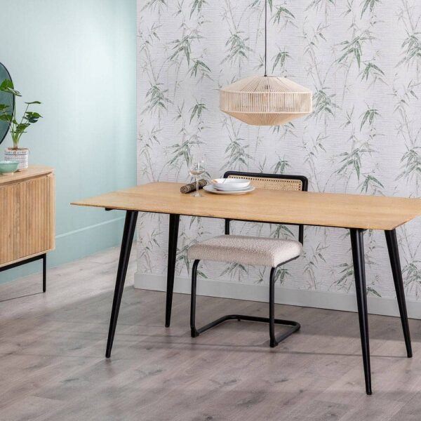 Con unas dimensiones de 160 x 90 x 77 cm, esta mesa de comedor es la elección ideal para quienes buscan un toque de estilo sin renunciar a la practicidad. La madera de acacia maciza aporta calidez y resistencia, mientras que sus patas metálicas negras añaden estabilidad y un aire contemporáneo. Perfecta para ambientes modernos, industriales o incluso escandinavos, esta mesa se adapta tanto a cenas íntimas como a reuniones familiares. Añade carácter y sofisticación a tu hogar con esta pieza única que combina diseño y funcionalidad. ¡Hazla parte de tu vida y transforma tu comedor en un lugar especial!