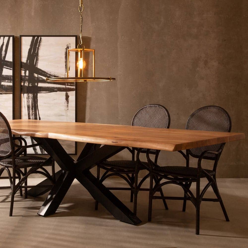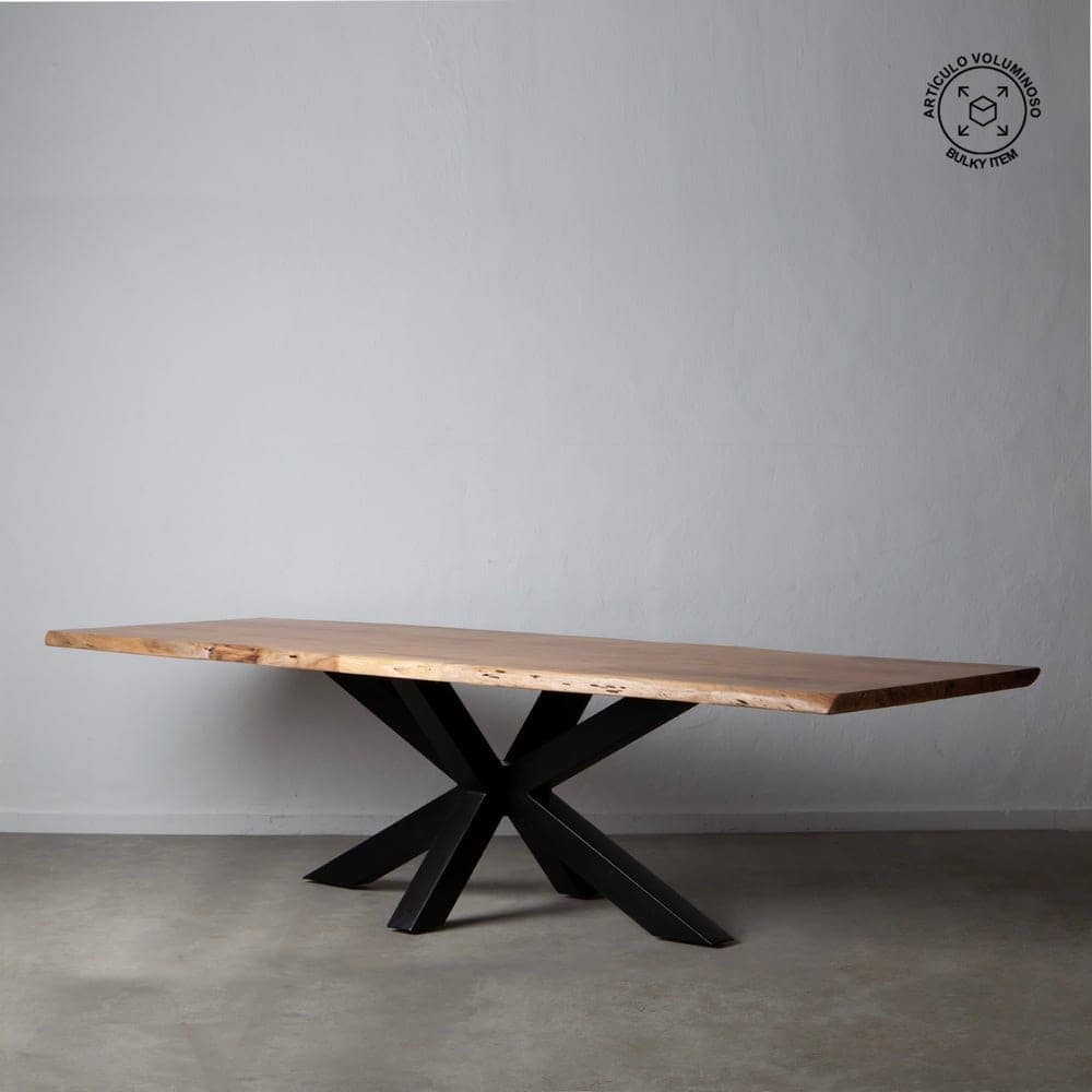 La mesa de comedor natural-negro en madera de acacia es una pieza que destaca por su diseño robusto y elegante. Con unas medidas de 300 cm x 94 cm x 78 cm, es ideal para grandes reuniones y espacios amplios. El sobre de madera maciza, con un grosor de 5 cm, muestra la belleza natural de la acacia, con vetas únicas que aportan carácter a cualquier ambiente. Su base metálica negra de 160 cm x 85 cm x 71 cm asegura estabilidad y añade un toque contemporáneo. Perfecta para estilos rústicos, industriales o modernos, esta mesa se convierte en el centro de atención de tu comedor. Su combinación de materiales garantiza durabilidad y un mantenimiento sencillo. Dale a tu hogar un aire de exclusividad y funcionalidad con esta mesa espectacular. ¡Hazla tuya y sorprende con su diseño imponente!