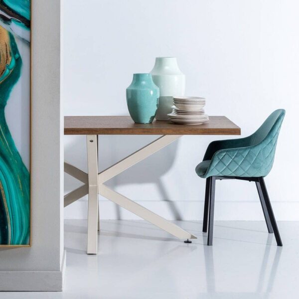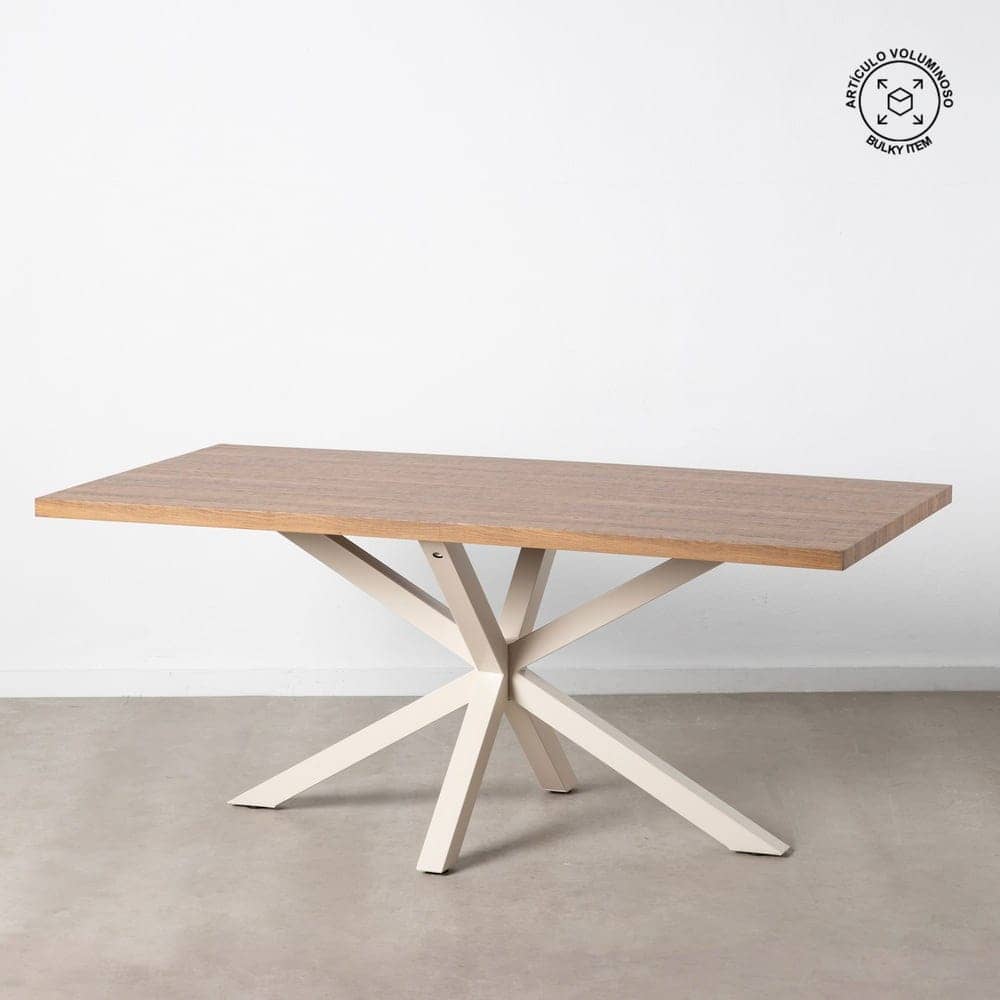 Esta mesa de comedor es el equilibrio perfecto entre estilo y practicidad. Con unas medidas de 180 x 90 x 76 cm, ofrece un amplio espacio para reuniones familiares o cenas con amigos. Su resistente tablero de 40 mm en acabado natural aporta calidez, mientras que su base metálica blanca añade un toque contemporáneo. Su diseño geométrico no solo es estéticamente impactante, sino que también garantiza estabilidad y durabilidad. Apta para ambientes modernos, minimalistas o industriales, esta mesa se integra con facilidad en cualquier decoración. Aunque precisa montaje, su estructura bien diseñada lo hace sencillo y rápido. Lleva a tu hogar esta pieza única y eleva cada experiencia al compartirla. ¡Descúbrela hoy mismo!