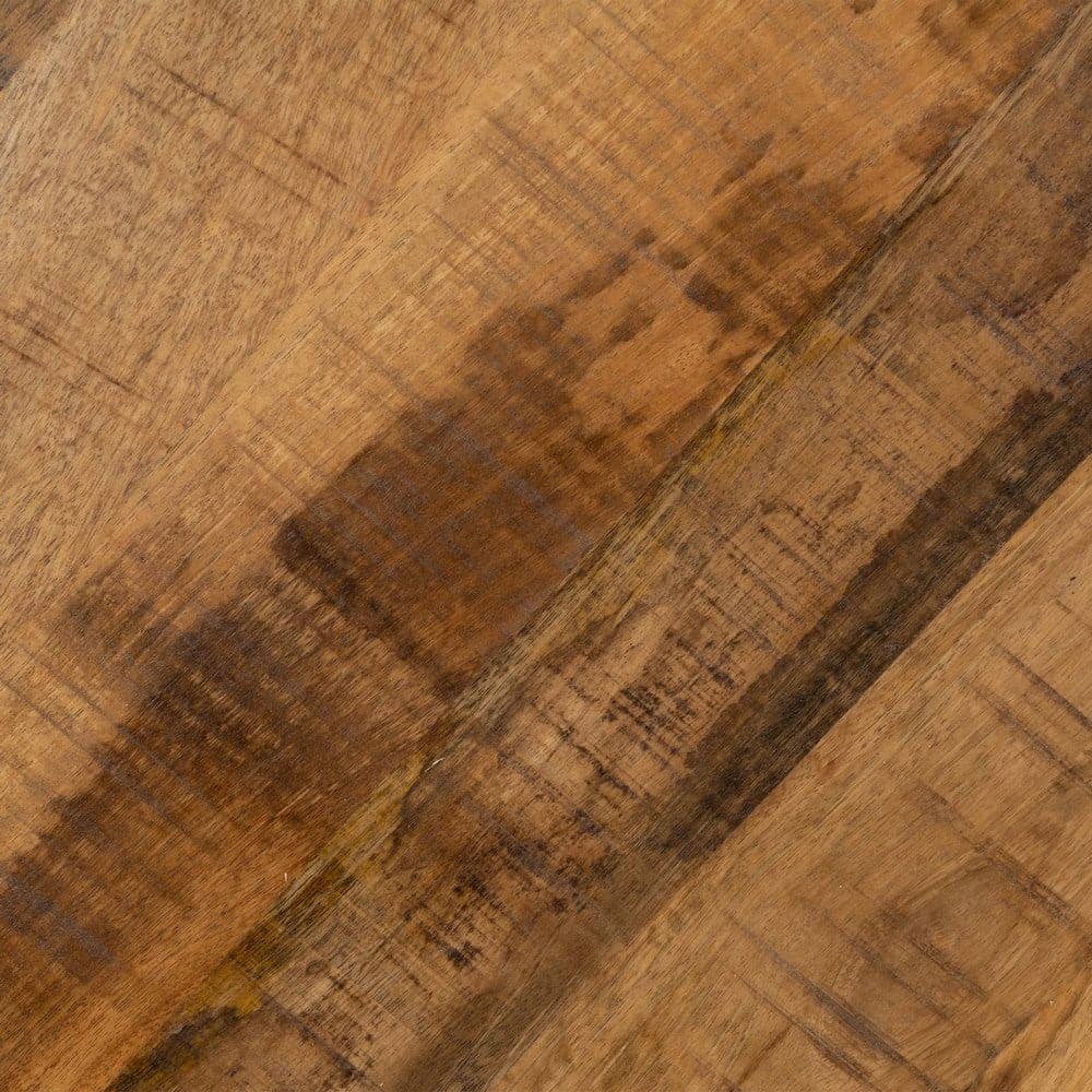 Con unas dimensiones de 130 x 130 x 77 cm, esta mesa de comedor se convierte en el centro perfecto para tus reuniones familiares o cenas especiales. Fabricada con madera de mango maciza y patas de hierro negro, ofrece un diseño robusto y duradero que destaca por su encanto artesanal. La superficie de madera, rica en detalles naturales, aporta calidez a cualquier ambiente, mientras que sus patas inclinadas en hierro añaden un toque industrial y moderno. Ideal para salones o comedores de inspiración rústica e industrial, esta mesa combina a la perfección funcionalidad y diseño. ¡Hazla tuya y transforma tu hogar en un espacio sofisticado y acogedor!