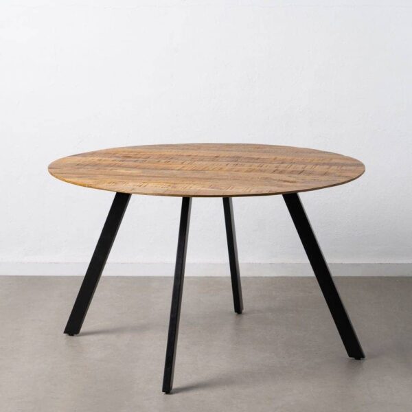 Mesa de Comedor Redonda Natural de Madera de Mango con Patas Negras de Hierro – 130 cm, Diseño Moderno y Acogedor para Salones e Comedores
