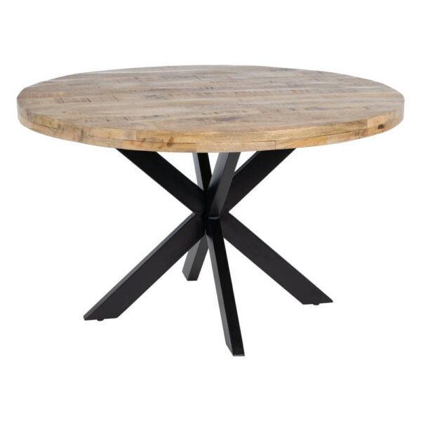 Esta mesa de comedor redonda es ideal para reuniones acogedoras. Fabricada en madera de mango maciza, su sobre de 6 cm de grosor aporta resistencia y carácter, mientras que las patas de hierro negro con diseño cruzado ofrecen estabilidad y un toque moderno. Sus dimensiones de 130 x 130 x 77 cm la convierten en una pieza central que se adapta a decoraciones contemporáneas, industriales o rústicas. La superficie, con detalles únicos propios de su fabricación artesanal, asegura un acabado auténtico y exclusivo. Eleva tu comedor con esta mesa que combina diseño y funcionalidad. ¡Hazla tuya y transforma tu hogar!