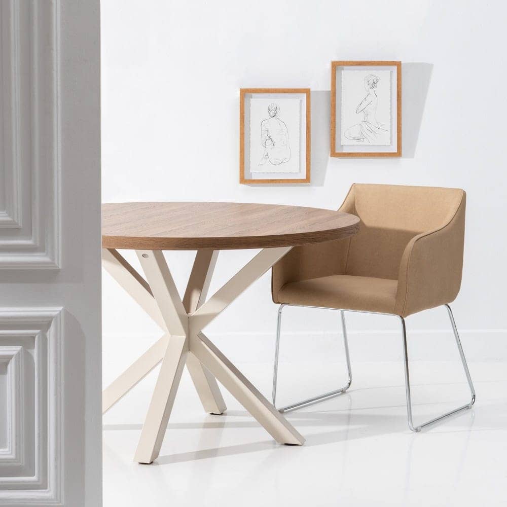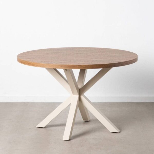 Mesa de Comedor Redonda Natural y Blanca de DM con Estructura de Metal – 120 cm x 76 cm – Diseño Moderno y Funcional para tu Comedor