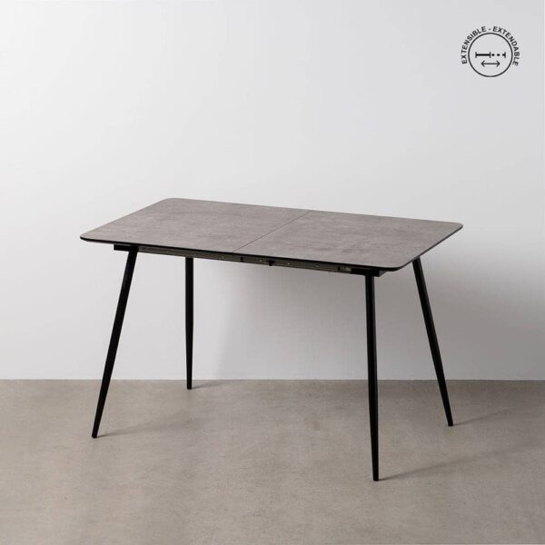 Optimiza tu espacio sin renunciar al estilo con esta mesa extensible gris. Su diseño funcional permite ampliar el tablero de 120 cm a 160 cm, ofreciendo la versatilidad perfecta para reuniones familiares o cenas especiales. La combinación de un tablero robusto y patas de hierro resistente garantiza estabilidad y durabilidad.