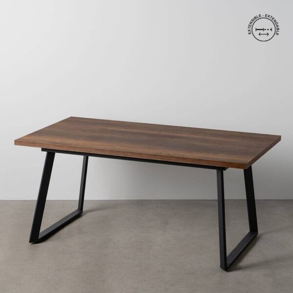 La mesa extensible marrón une diseño sofisticado y funcionalidad, ideal para espacios modernos y cálidos. Su sobre extensible pasa de 170 cm a 230 cm, ofreciendo espacio adicional para reuniones familiares o cenas con amigos. La apertura central y sus patas de hierro aportan estabilidad y resistencia, mientras que su acabado en madera melaminada añade un toque natural y acogedor.