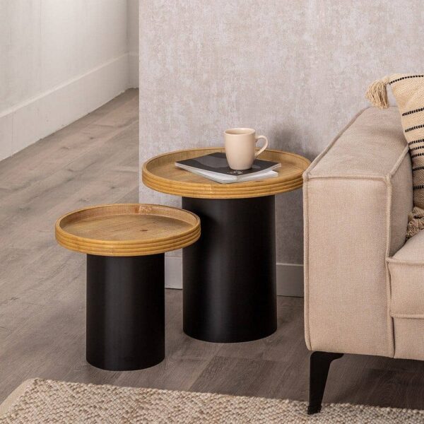 Mesa Auxiliar Compacta Natural y Negra de 37 cm – Diseño Elegante y Moderno para Salones y Dormitorios