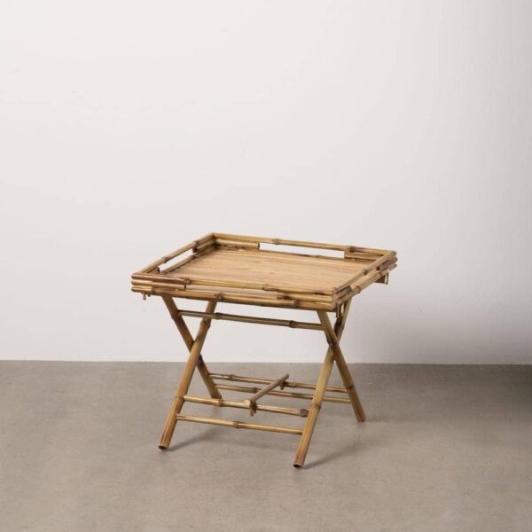 Con unas medidas de 56 cm x 56 cm x 50 cm, esta mesa de bambú es lo suficientemente compacta para encajar en cualquier rincón, pero amplia suficiente para su uso práctico. Es ligera y plegable, lo que permite una fácil colocación y almacenamiento. La estructura de bambú ofrece resistencia y estabilidad, aunque es recomendable mantenerla en interiores para evitar su desgaste.